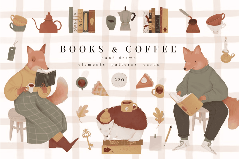 Watercolor Book Nook Illustrations