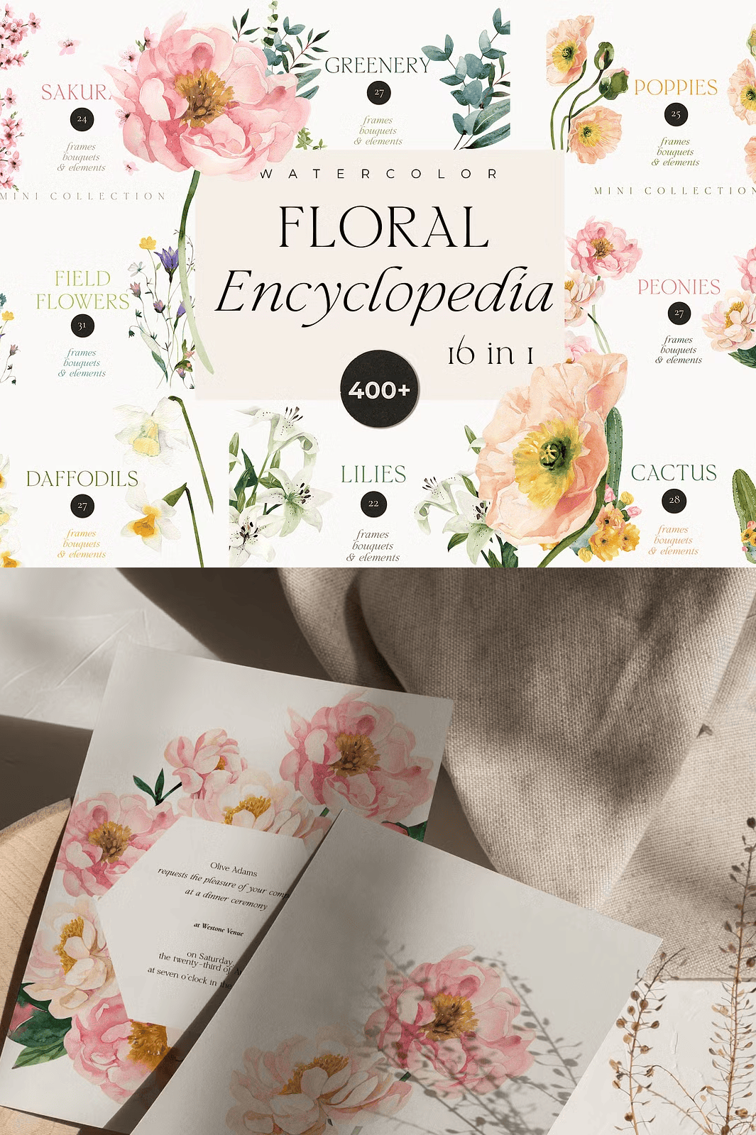 Whether you’re crafting an intimate spring invitation, building a luxury brand identity, or exploring your artistic side, the **Floral Encyclopedia** provides the perfect blend of realism, emotion, and functionality. Let the timeless elegance of hand-painted watercolors inspire your next masterpiece. Elevate your designs, captivate your audience, and bring nature’s grace into every pixel.