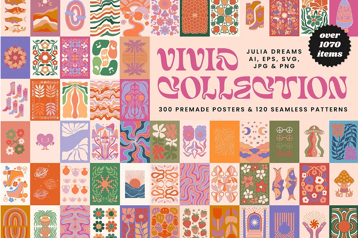 Step into a world of vibrant artistry with the Vivid Posters and Patterns Bundle a colossal, professionally curated collection of over 1,070 high-quality digital assets. Inspired by the bold aesthetics of the 70s, timeless vintage charm, and the organic beauty of nature, this kit fuels creative projects with limitless energy and visual impact. Whether you’re building a brand, designing for print, crafting digital content, or launching a handmade business, this bundle delivers everything you need fast, flexible, and fiercely creative.