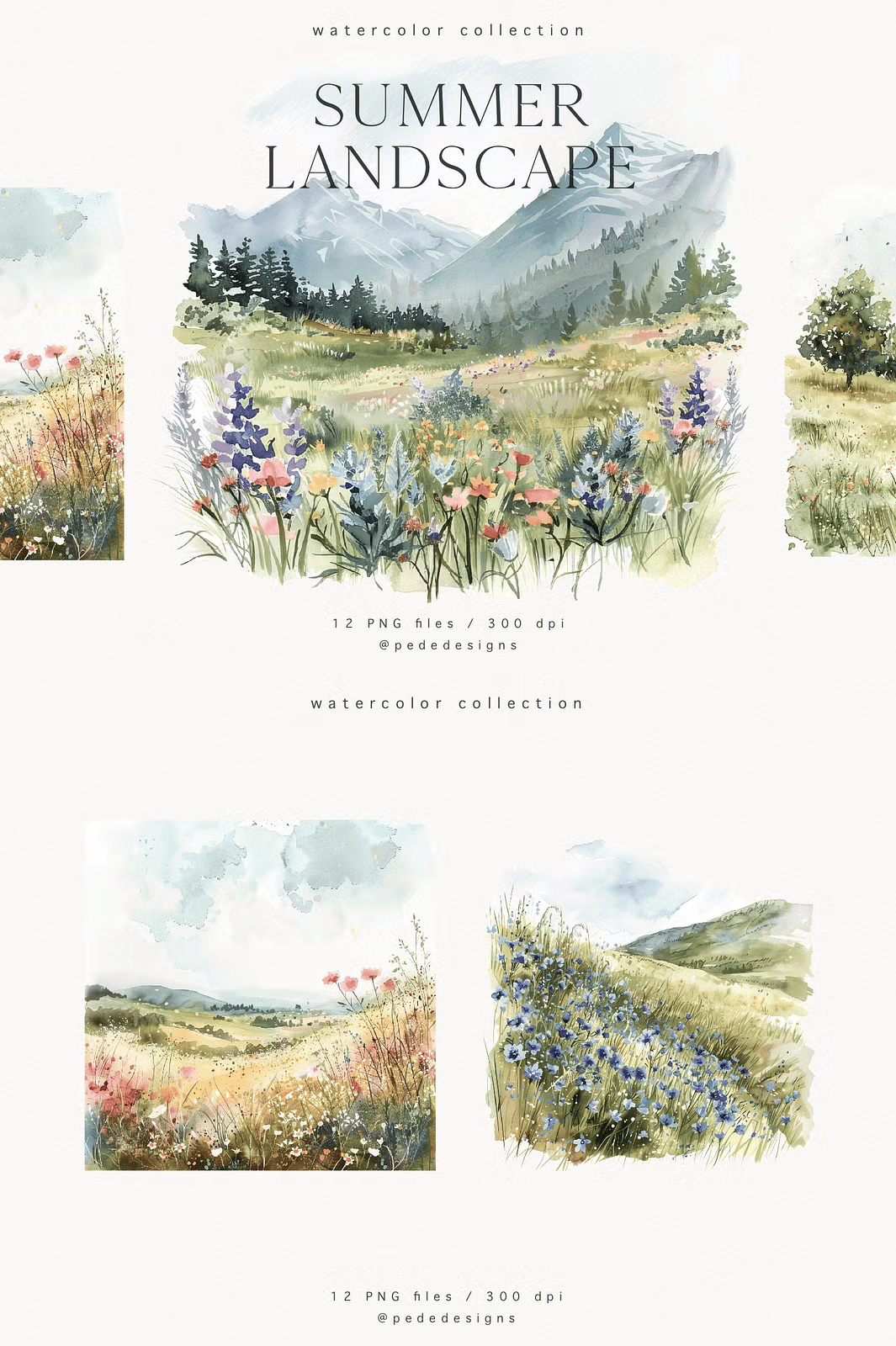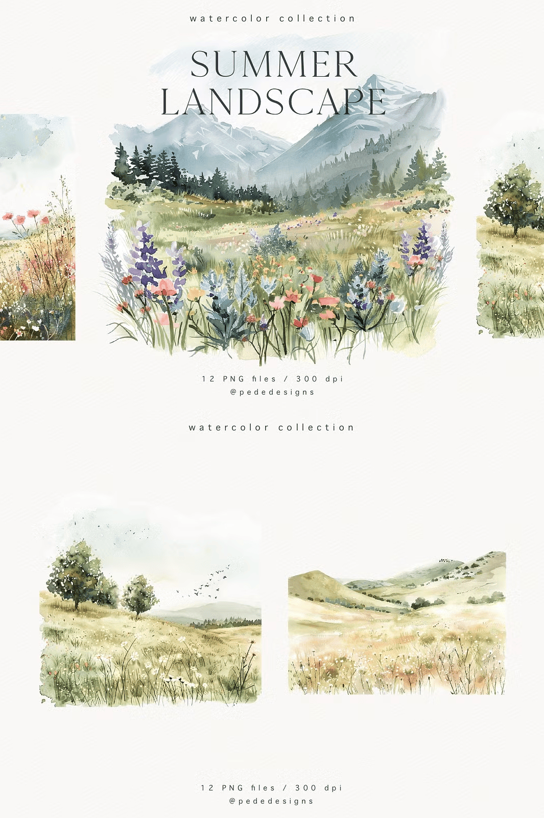 Immerse yourself in the serene charm of summer with this exclusive collection of 24 meticulously hand-painted watercolor clip art illustrations. Each piece captures the essence of warm weather, golden light, blooming flora, and peaceful natural scenery—perfect for designers who want to evoke a sense of calm, vibrancy, and seasonal beauty. These digital assets are crafted with care, featuring soft brushstrokes, delicate blending, and rich color palettes that mimic the look of real watercolor paintings. Whether you’re creating greeting cards, digital scrapbooks, or branding materials, this collection brings authenticity and emotional depth to your designs.