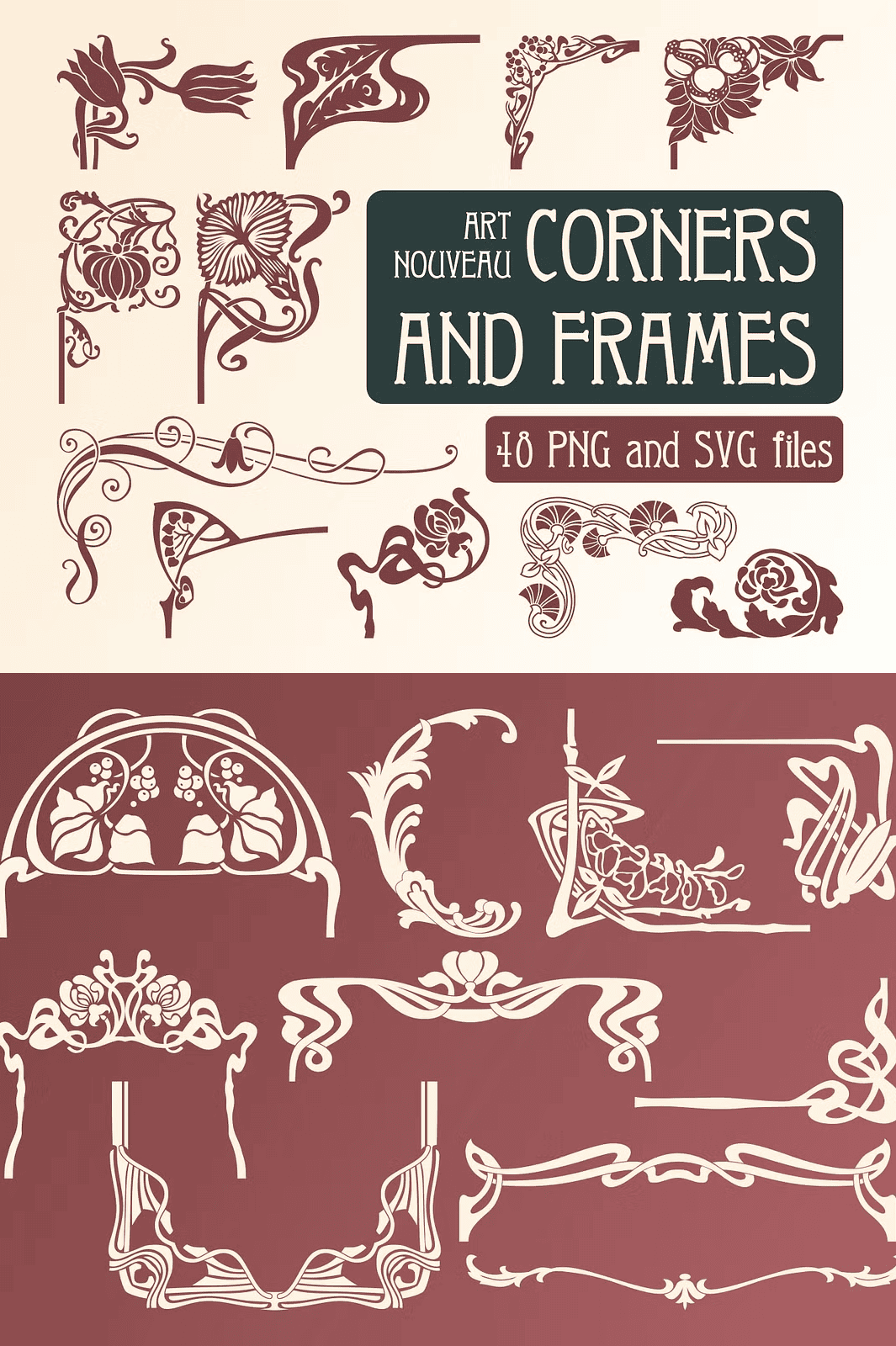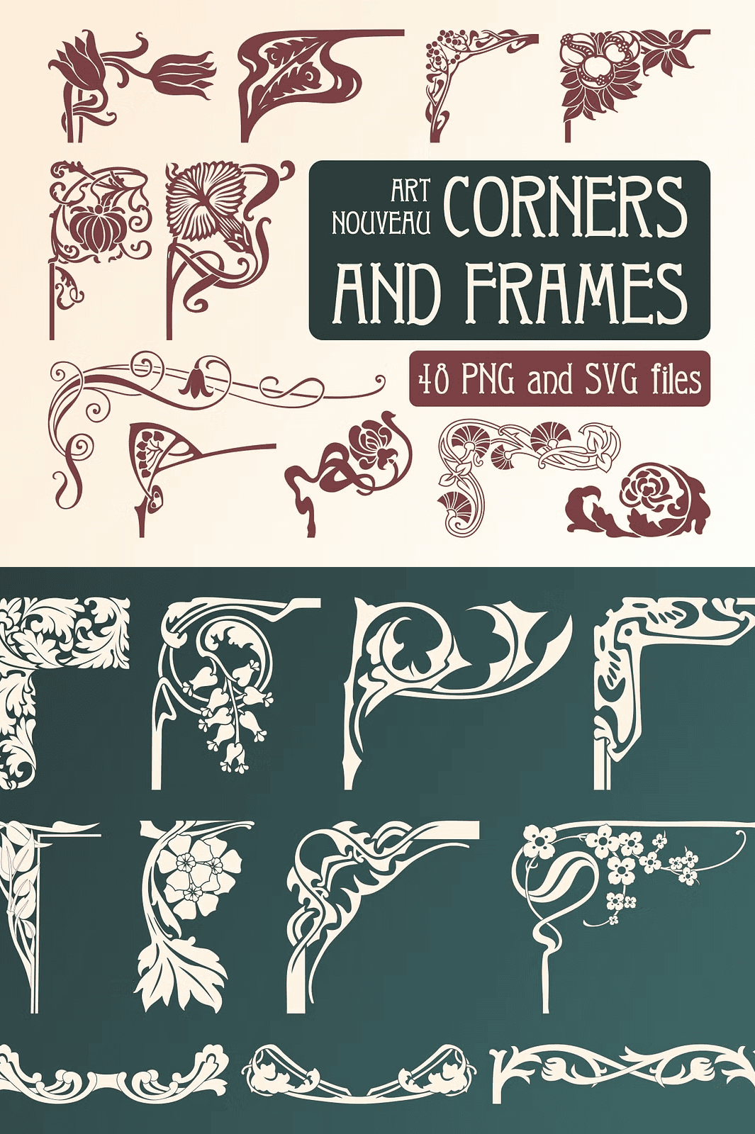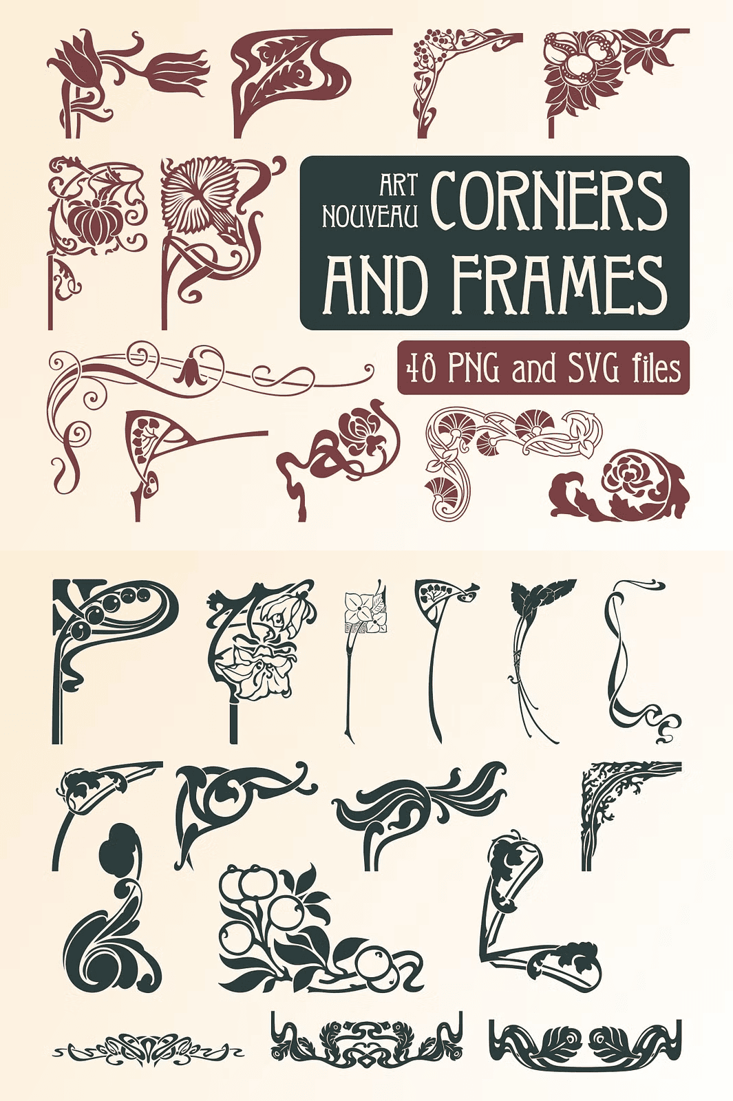 Step into the golden era of intricate craftsmanship with this exclusive collection of **48 hand-crafted Art Nouveau corners and frames**. Designed with flowing lines, delicate flourishes, and ornate calligraphic details, these retro-inspired elements bring timeless sophistication to any creative project. Perfect for designers seeking to infuse their work with a sense of history, elegance, and artistic depth, this set is ideal for everything from fashion to editorial art.