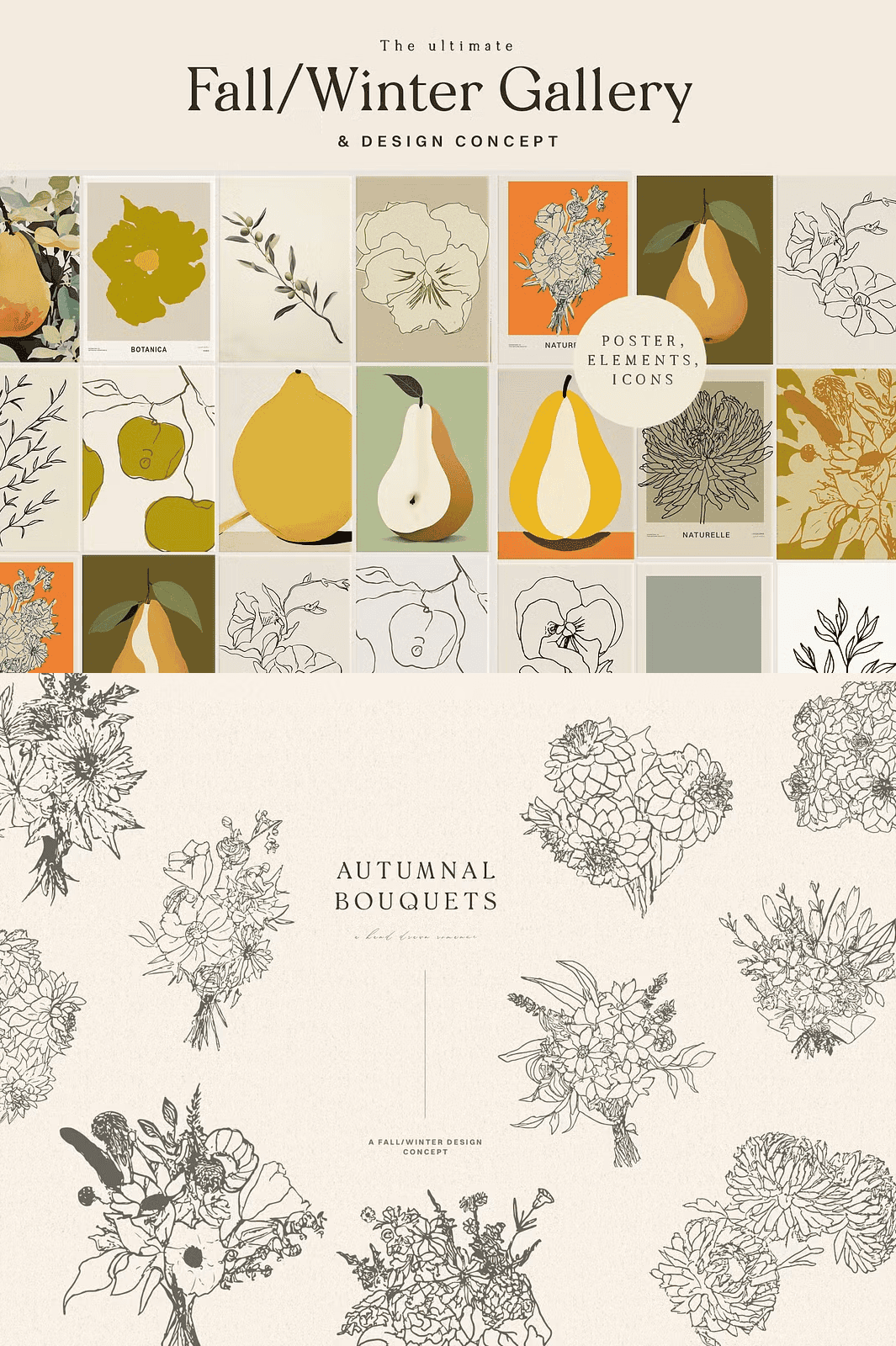 – **30+ Custom Illustrations and Icons** – Features seasonal favorites like dahlias, chrysanthemums, olive twigs, apples, pears, and more—each created with precision and artistic flair.