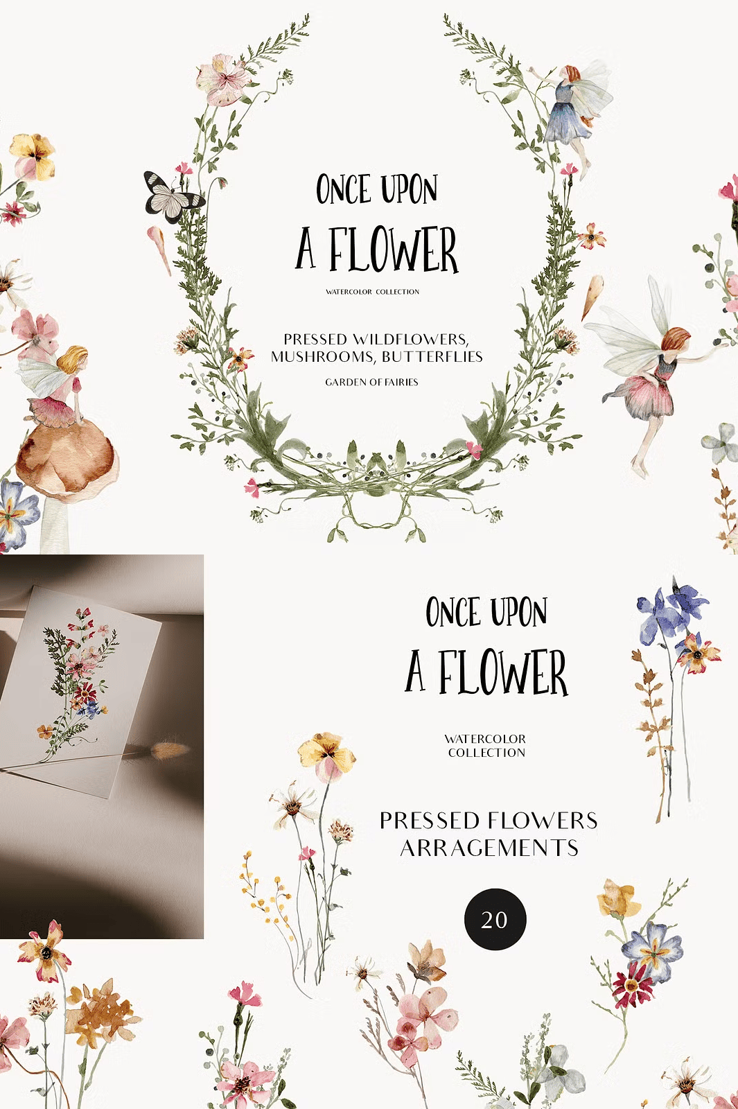 Discover a universe where time stands still and beauty lingers — not just in blooming flowers, but in the delicate ghosts of petals long gone. Once Upon a Flower is more than a collection; it’s a love letter to wild, pressed, and dried botanicals, transformed into art that tells stories of memory, nature, and magic. Every stroke was hand-painted on high-quality watercolor paper and digitally scanned at 300–600 DPI for unmatched clarity and detail. This is not just design — it’s storytelling through color, texture, and emotion.