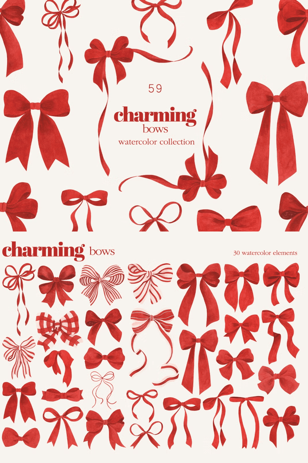 – **30 Isolated Watercolor Bows** (600 DPI, PNG with transparent background): Ranging from delicate ribbon loops to bold, show-stopping designs. Sizes vary between ~500–4000px, perfect for everything from tiny planner stickers to large poster elements.