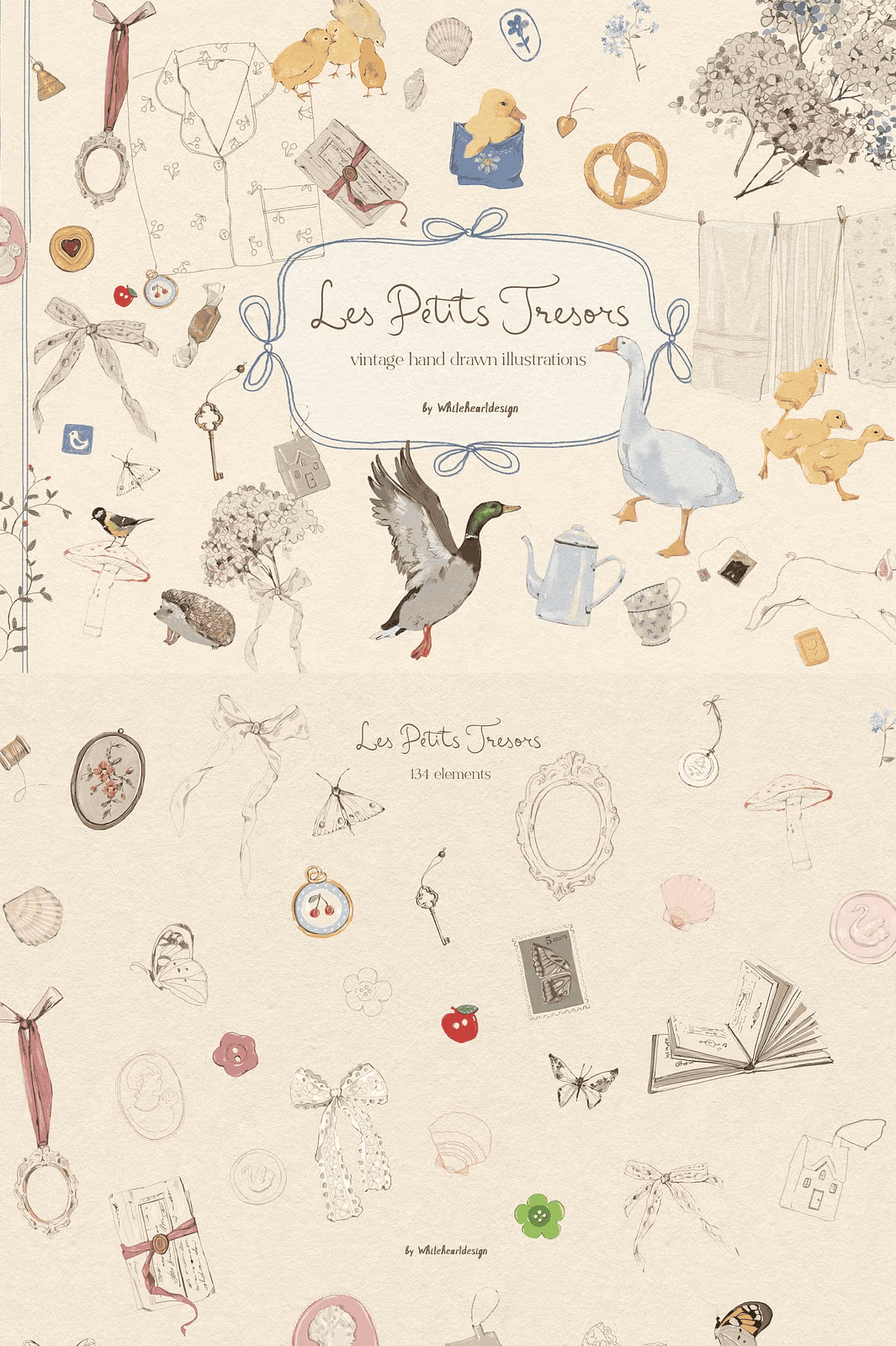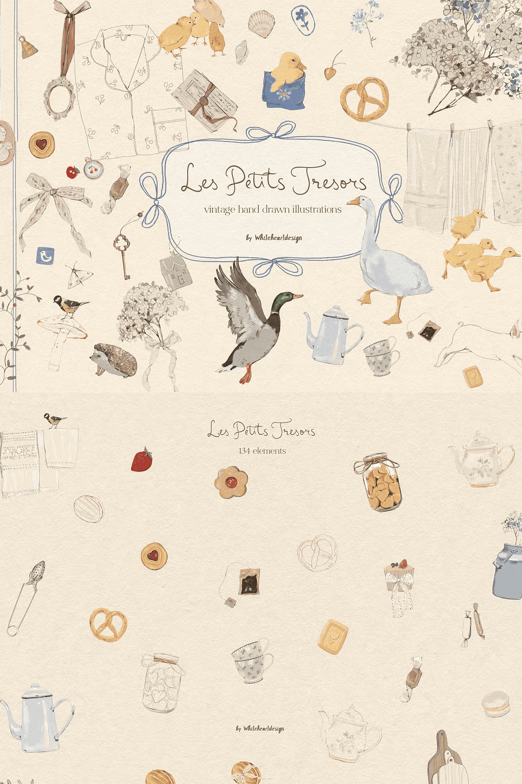 Step into a handcrafted universe filled with gentle nostalgia and playful elegance. The Les Petits Trésors (The Little Treasures) Cottagecore Clipart Collection is more than a digital illustration set — it’s a storytelling archive of delicate, hand-drawn moments. This unique assortment blends soft watercolor washes, fine-line details, and tactile colored pencil textures to capture the spirit of imperfect beauty, making every image feel like a cherished memory from a bygone era.
