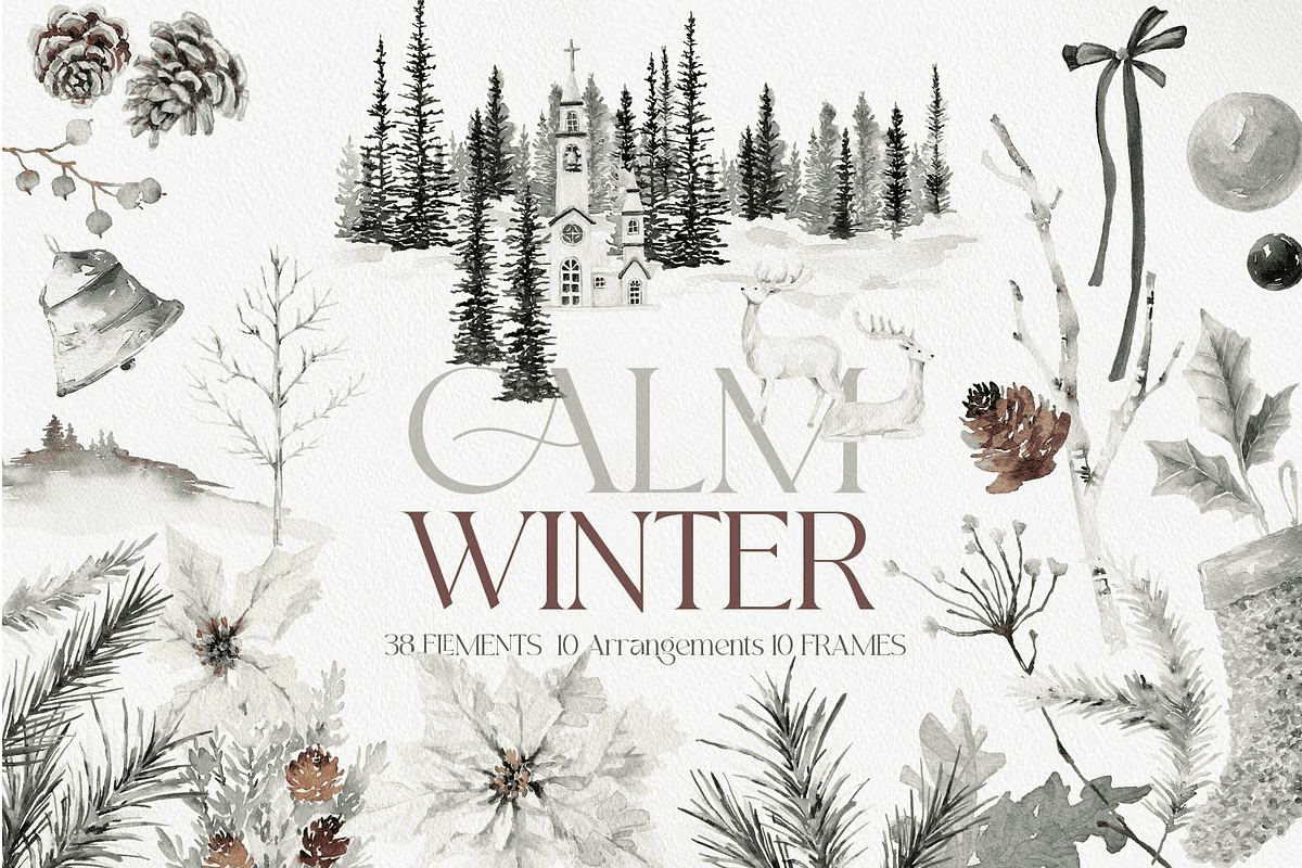 Watercolor Clipart – CALM WINTER