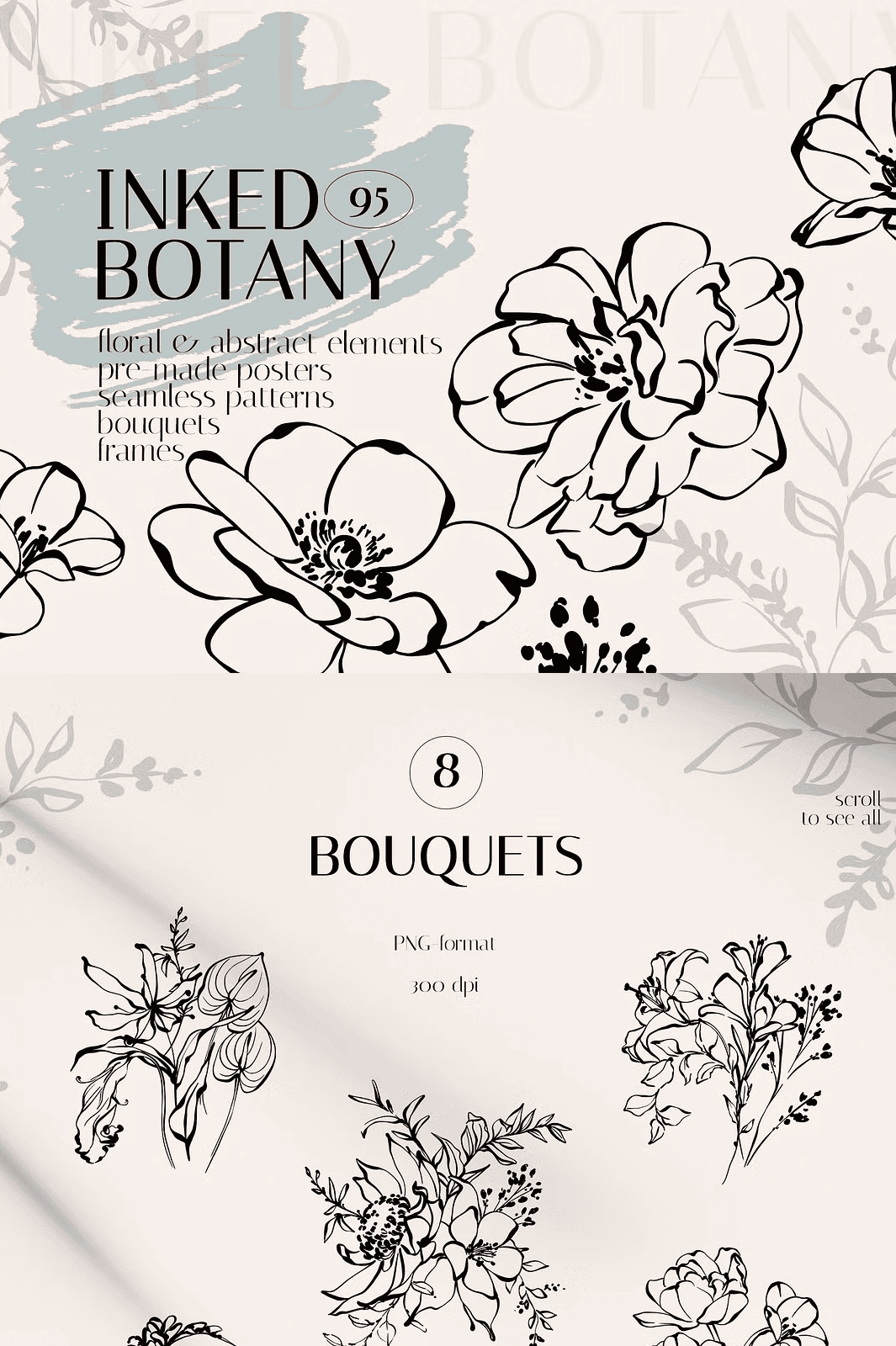 Each element is meticulously hand-drawn and digitally refined to ensure sharpness and clarity. With **300 DPI resolution**, every stroke retains exceptional detail, making these files ideal for both print and digital applications. Whether you’re crafting a brand identity, designing packaging, or creating custom stationery, INKED BOTANY delivers professional-grade visuals that command attention.