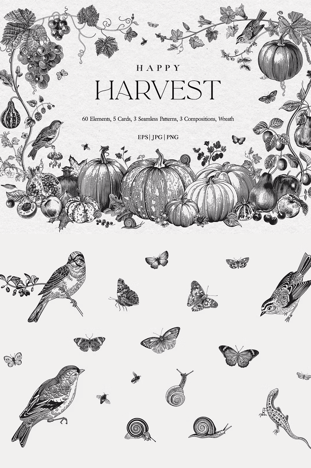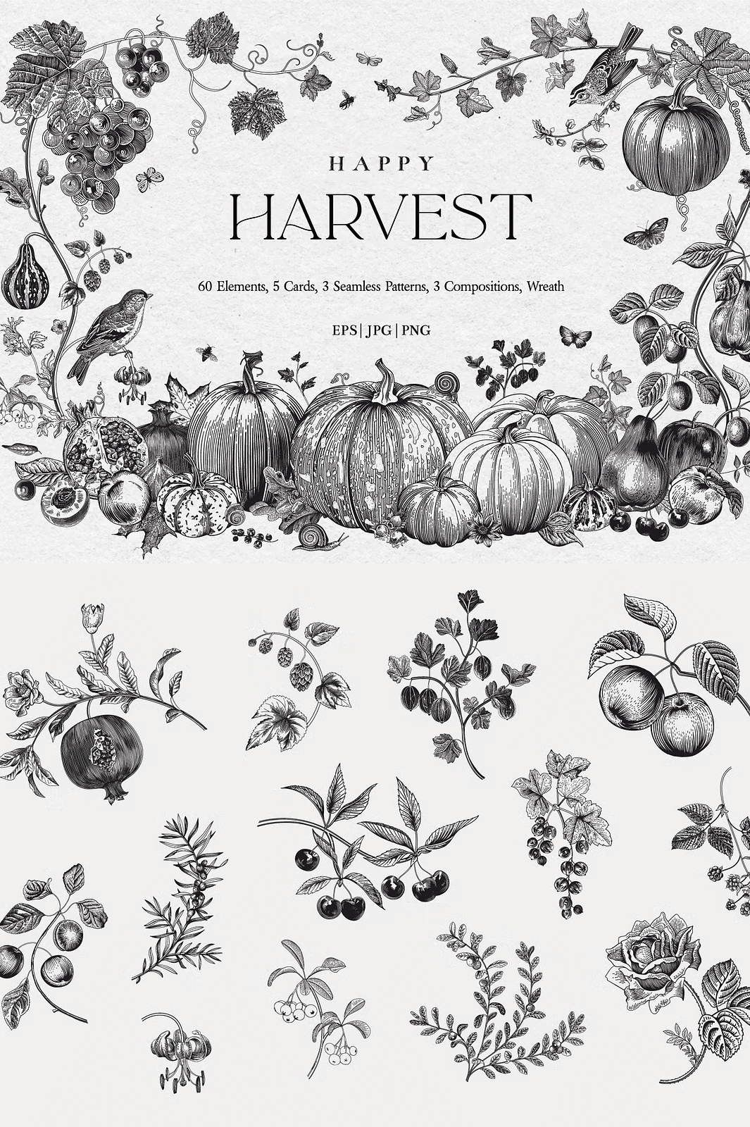 Each element is crafted with expressive linework and authentic texture, perfect for translating the rustic charm of seasonal harvests into vibrant creative expressions. From delicate berry clusters to intricate pumpkin motifs and flying autumn birds, these illustrations are engineered to inspire and elevate every project.