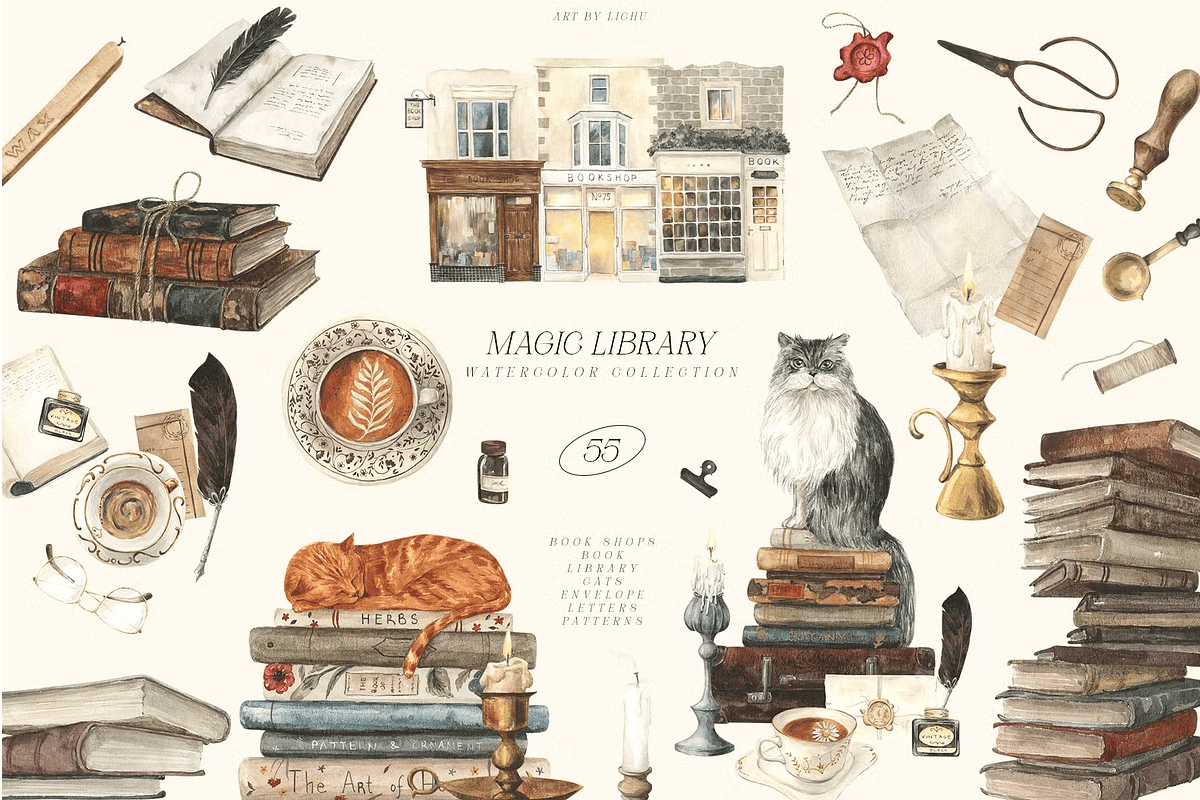 Stop searching for generic, flat visuals. With the **Magic Library Watercolor Collection**, you gain immediate access to a rich, immersive, and artistically powerful resource that transforms ordinary designs into magical storytelling experiences. Whether you’re a professional designer or a passionate hobbyist, this set gives you the tools to craft with purpose, beauty, and endless imagination.