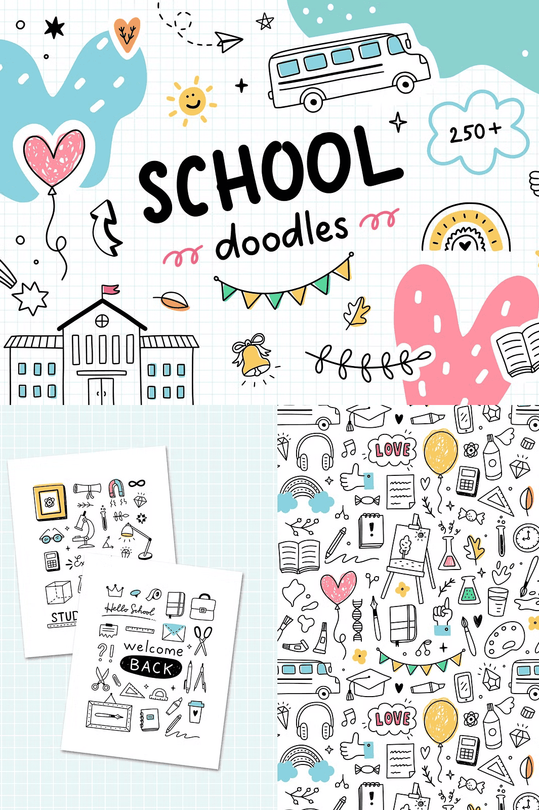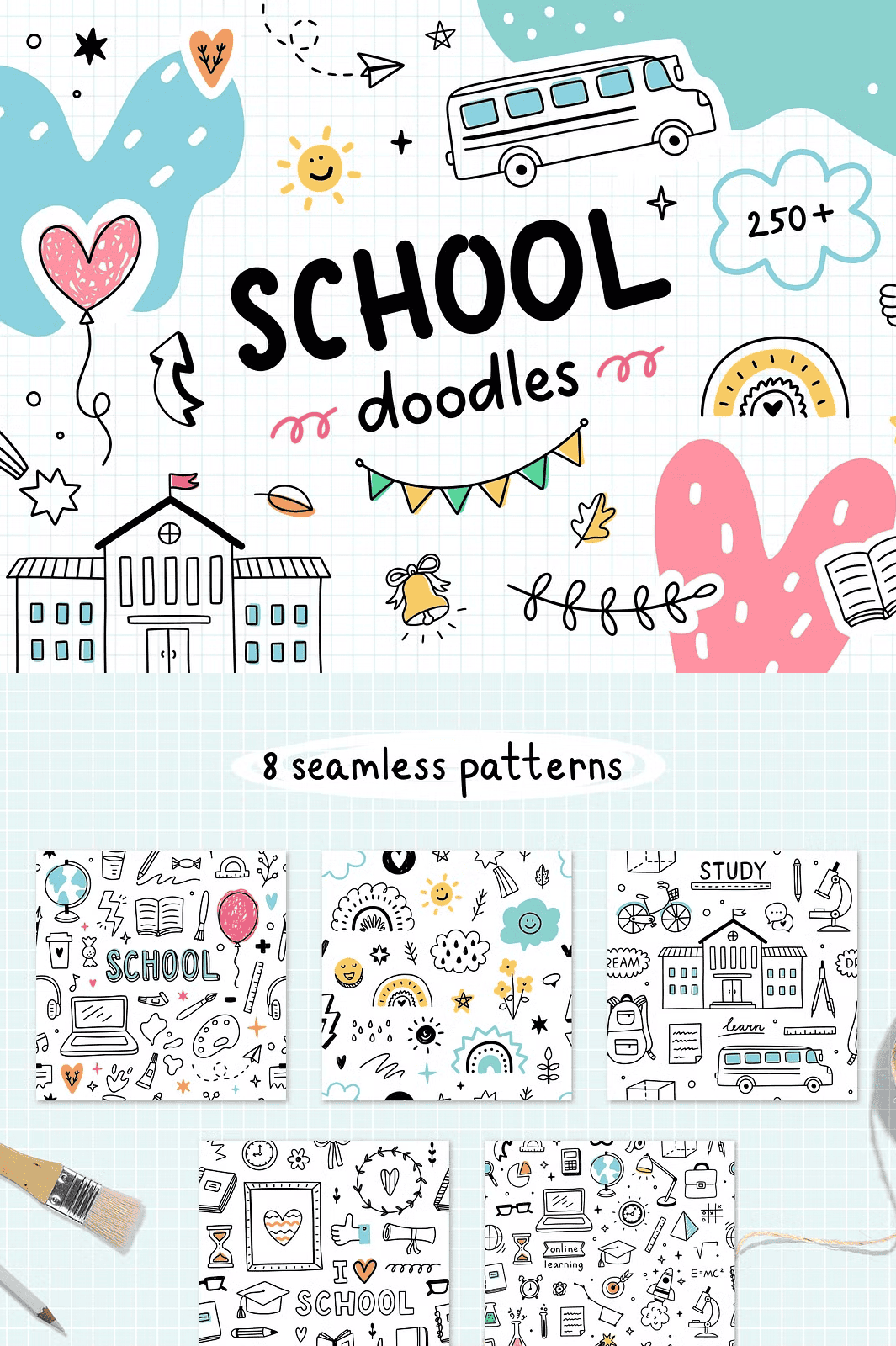 Download Your Cute School Doodles & Patterns Collection Today