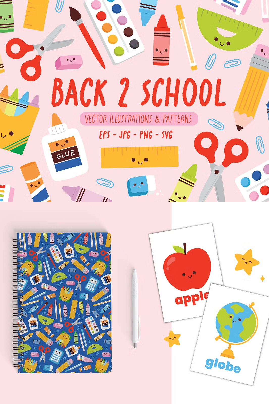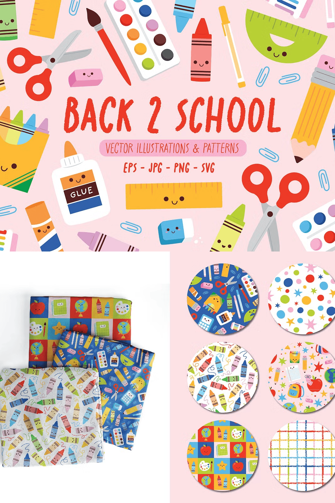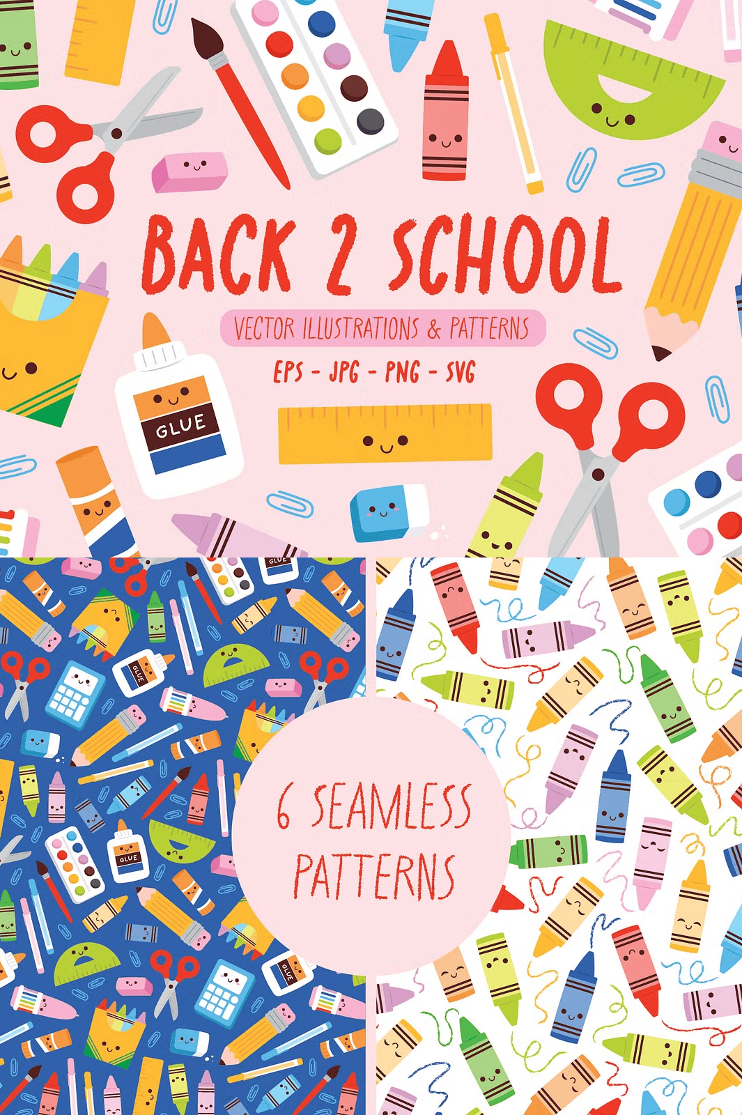 – **6 seamless pattern designs** (EPS, PNG) – ideal for backgrounds, notebooks, stationery, and fabric