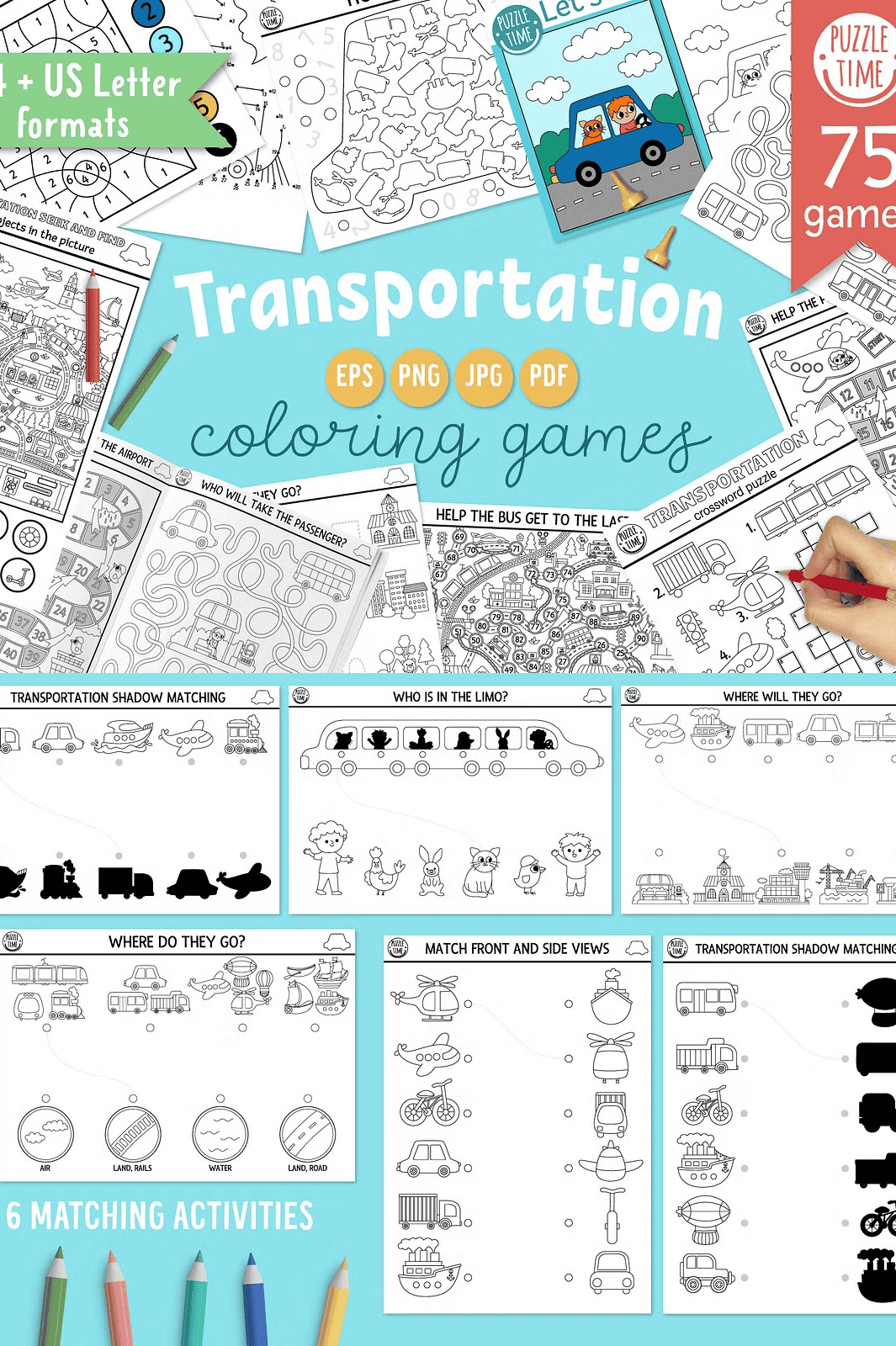 Unleash the fun and learning potential of transportation-themed games with this dynamic, kid-friendly collection! Designed for young explorers, this set transforms playtime into a rich, hands-on educational experience. Whether used at birthday parties, in classrooms, or during quiet family moments, these activities spark curiosity, build essential skills, and create lasting memories. Each game is crafted with precision to encourage creativity, problem-solving, and motor development—all while teaching kids about different vehicles and modes of transportation.