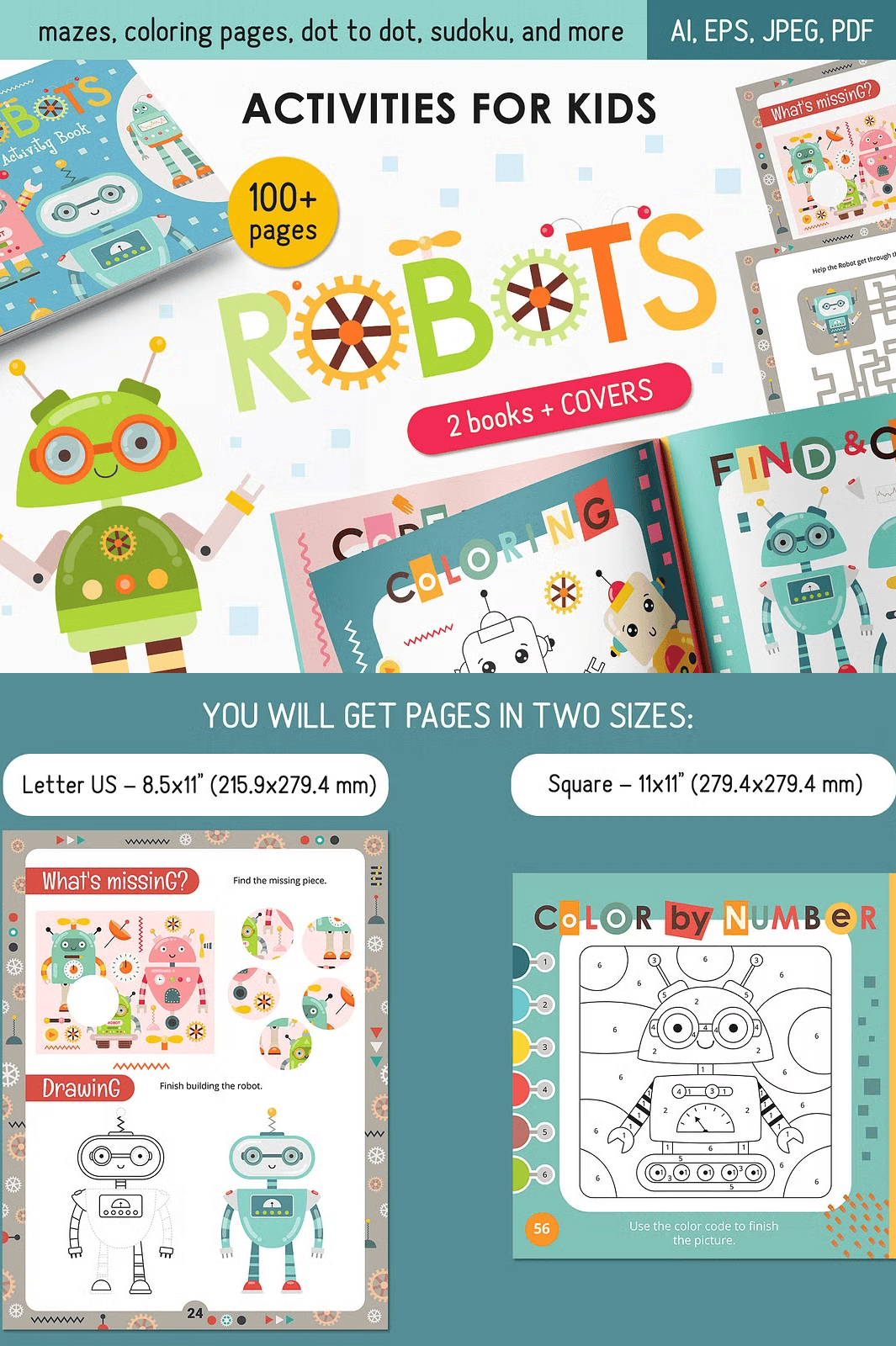 – Page-by-page AI, EPS10, JPEG, and PDF versions for each format