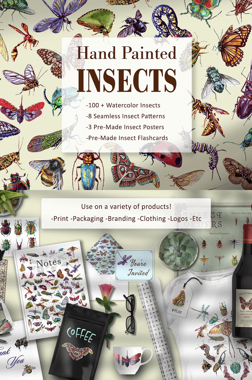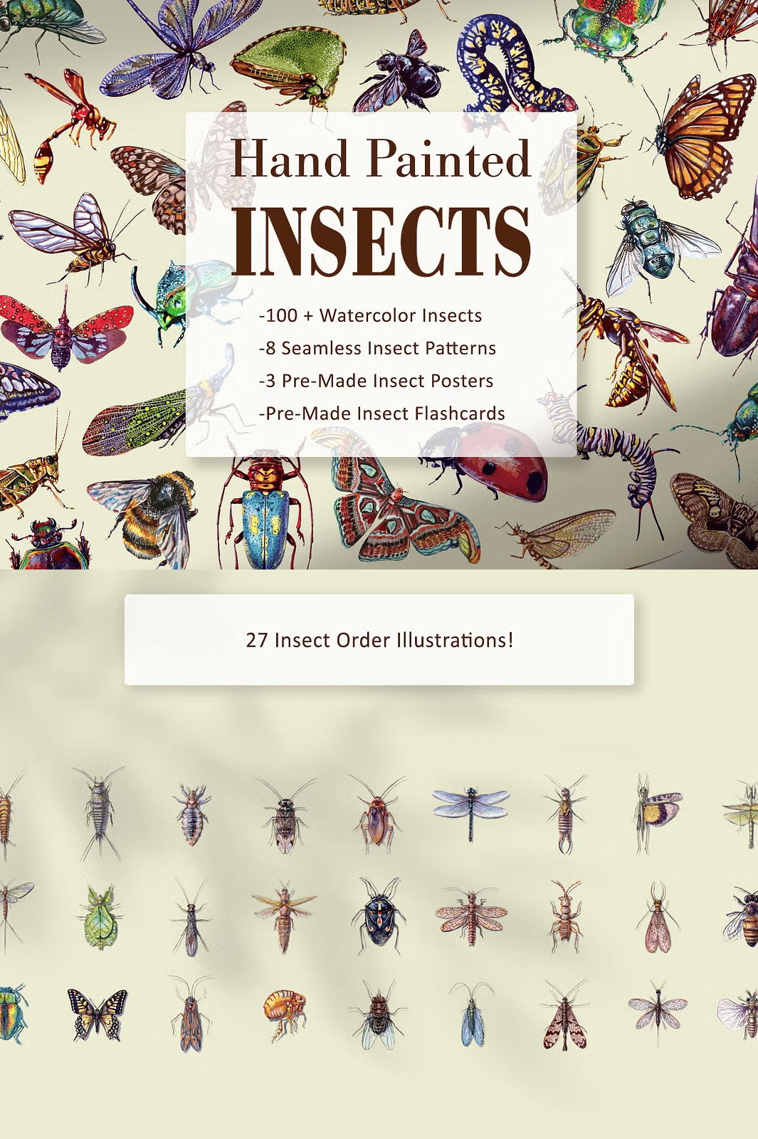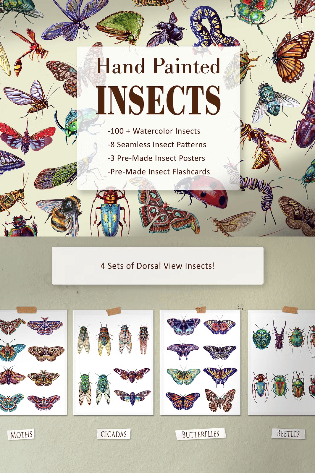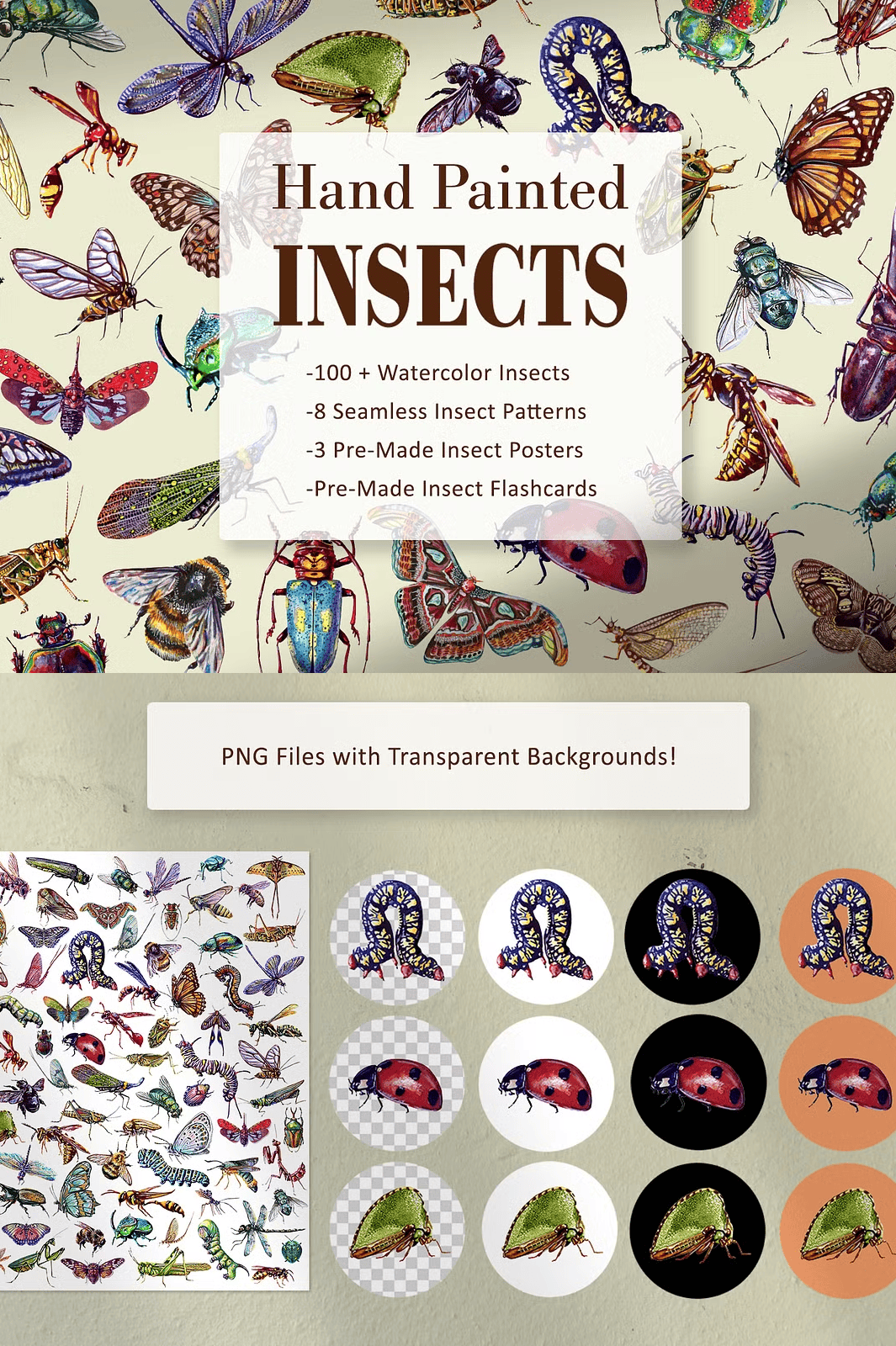 Stop wasting time browsing low-quality stock images or paying for generic insect illustrations. With one simple click, you’ll unlock the entire **Hand Painted Watercolor Insect Set**, ready to use in seconds.
