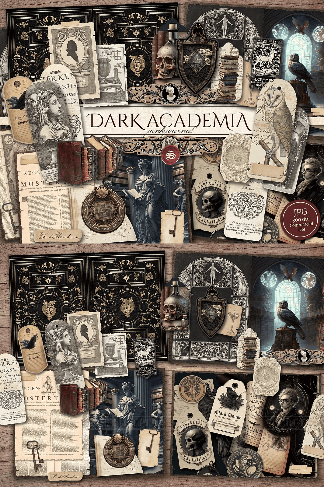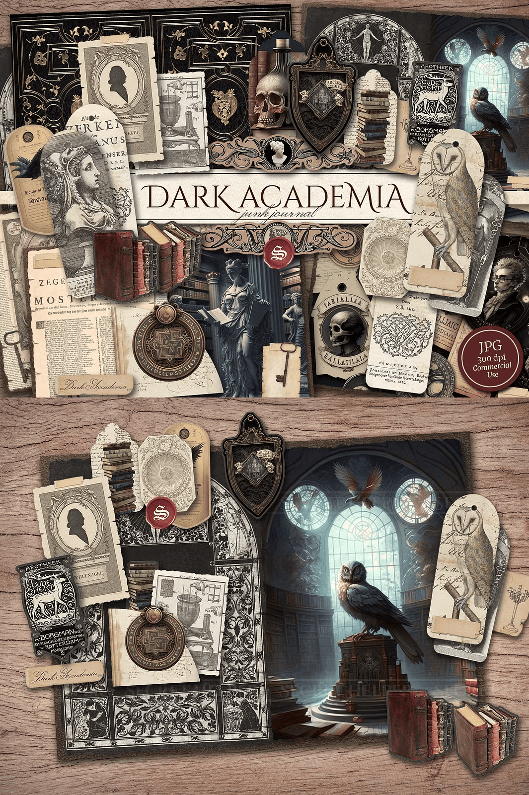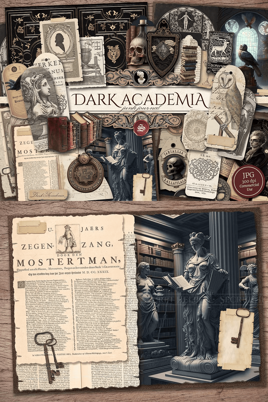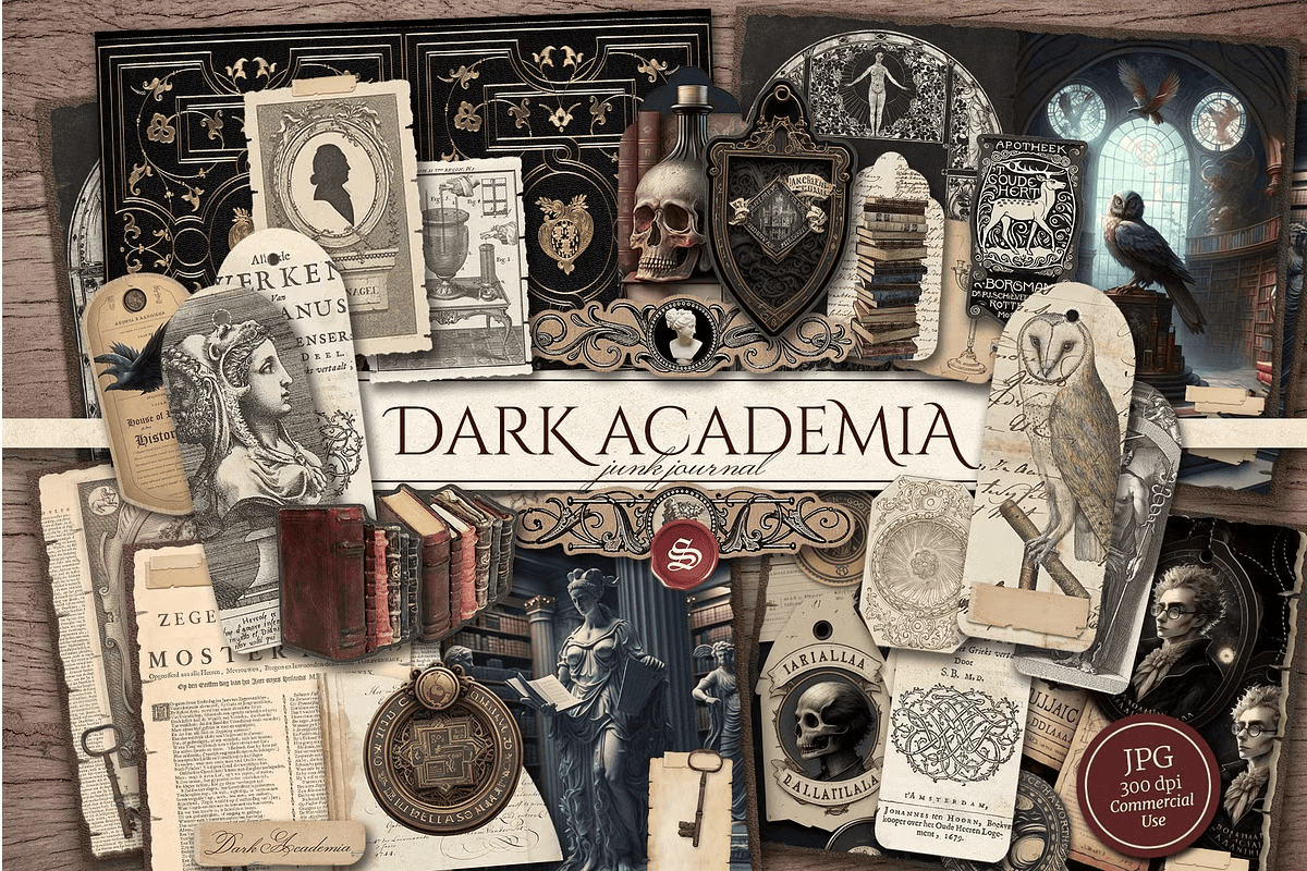 Unlock the magic of the old school with this **fully printable Dark Academia Scrapbook Kit** a thoughtfully designed digital collection featuring 12 stunning A4-sized JPG pages that instantly transform into a richly layered A5 junk journal. Each illustration is hand-crafted to evoke the timeless elegance of vintage academia: shadowed reading nooks, towering bookshelves, crumbling stone statues, and owls watching silently from gilded shelves.