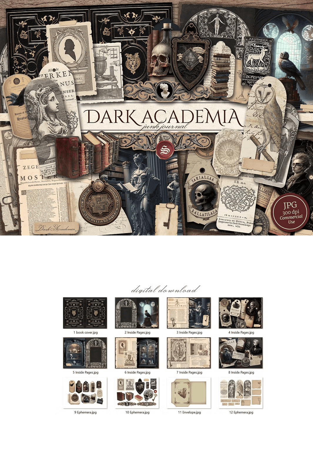 This kit isn’t just a set of pages it’s a portal to an intellectual dream world. Whether you’re a student, artist, writer, or collector of aesthetic magic, you’ll find inspiration in every line and texture. These digital sheets are perfect for crafting journals, collage art, handmade planners, or themed scrapbooks that whisper secrets from centuries past.