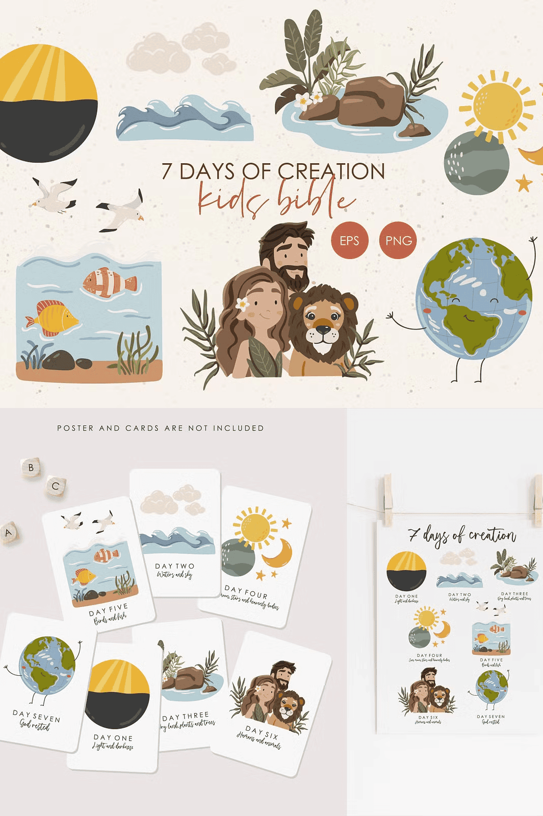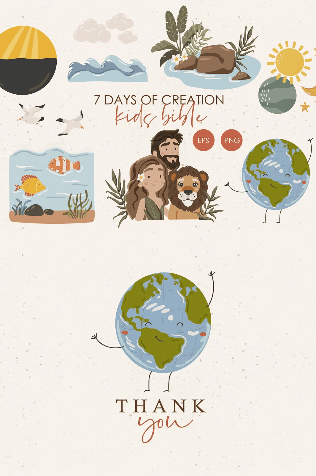 Whether you’re making learning posters, printable coloring sheets, classroom decorations, church handouts, or digital teaching slides, these cliparts adapt effortlessly. Use them to teach the story of creation in a visually rich way, support Bible journaling activities, or design fun Christian holiday cards for Easter, Pentecost, or Children’s Day events.