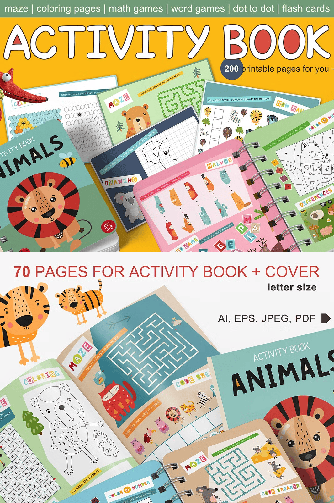 – 70 full-sized pages in US Letter format (8.5 x 11 inches) — perfect for creating a full printable activity book