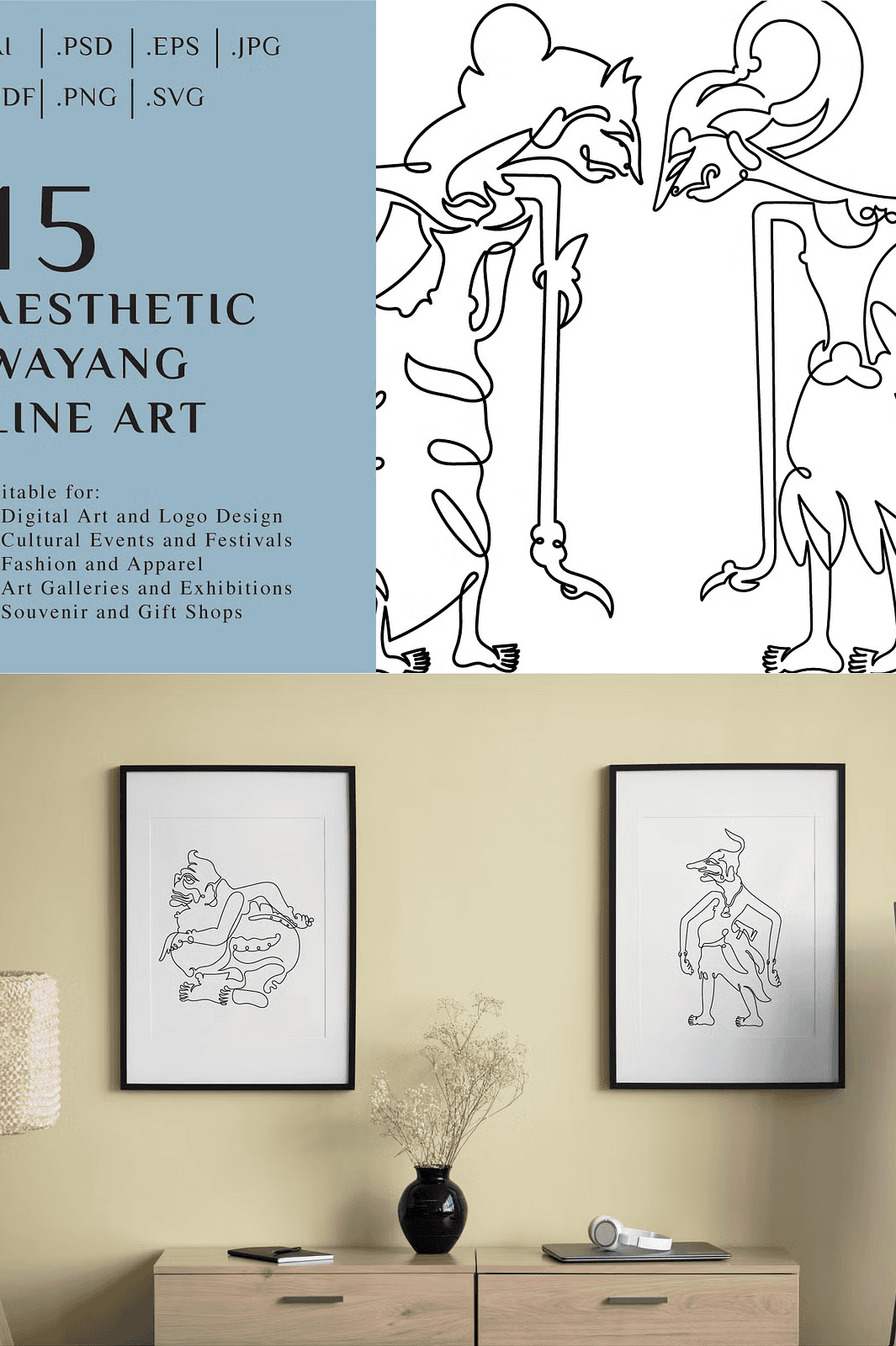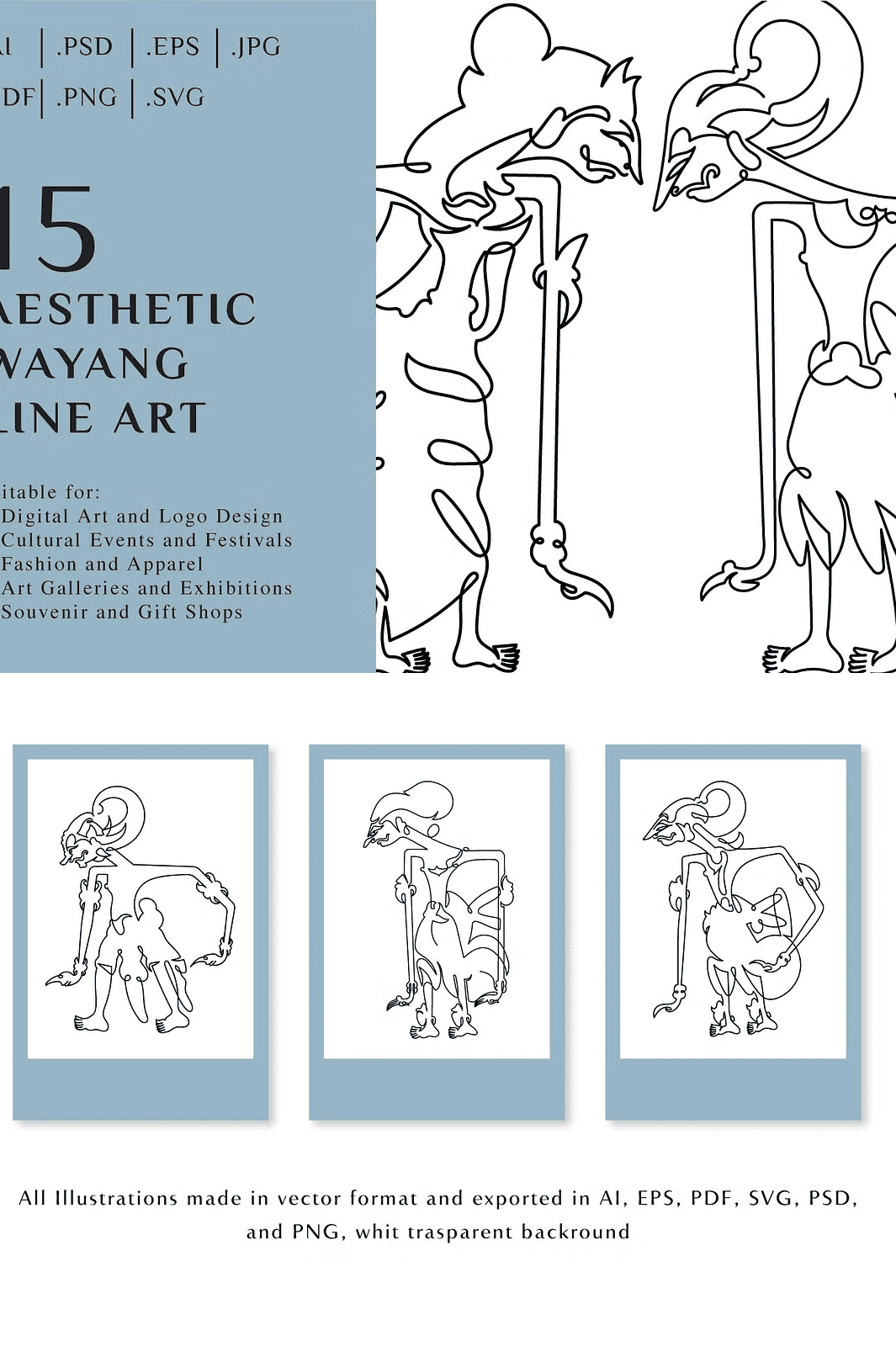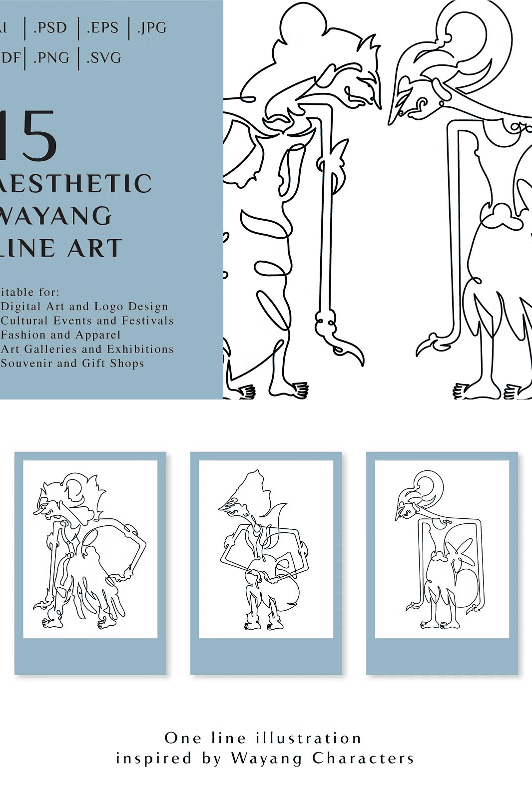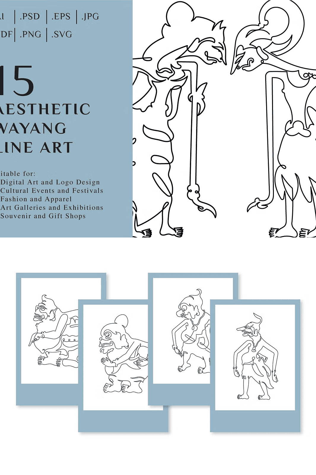 Unveil a world of tradition, storytelling, and visual elegance with the **15 Aesthetic Wayang Line Art** collection where ancient Indonesian heritage meets modern creative expression. This meticulously curated set features 15 hand-drawn, high-resolution line art illustrations inspired by the iconic puppets of Wayang Kulit. Each piece captures the spiritual depth, symbolic forms, and intricate detailing that define this revered art form, bringing timeless cultural narratives to life on any digital or print canvas.