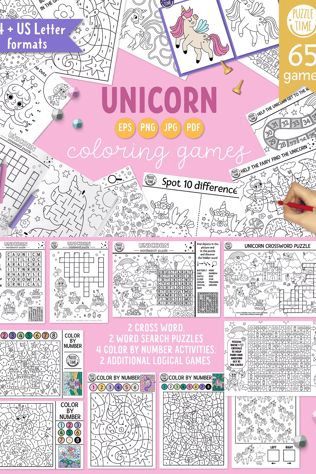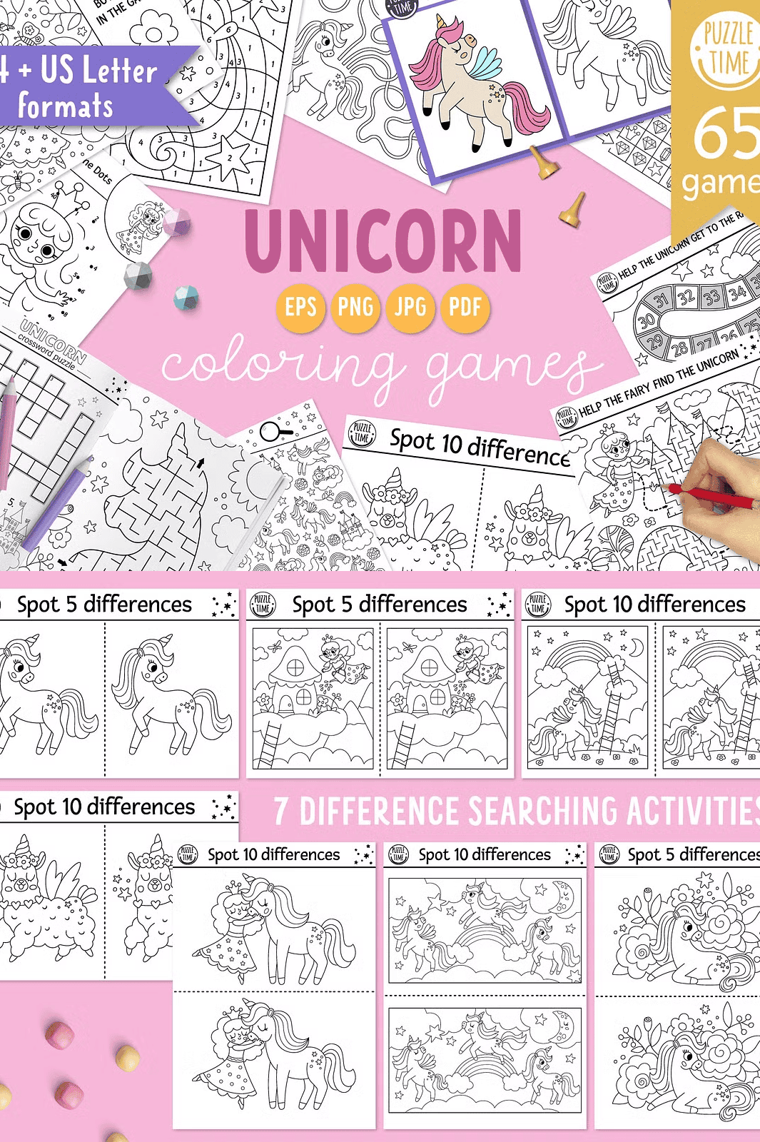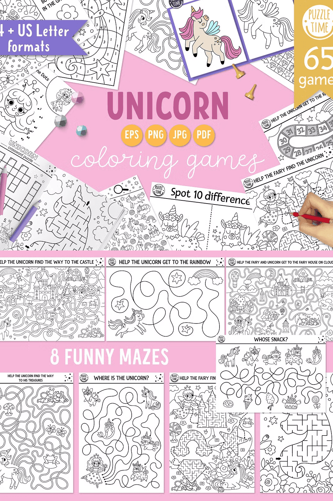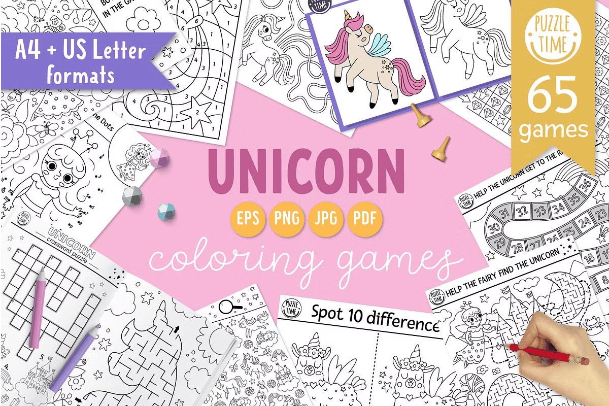 – **Mazes** – Guide unicorns through enchanted forests and magical tunnels