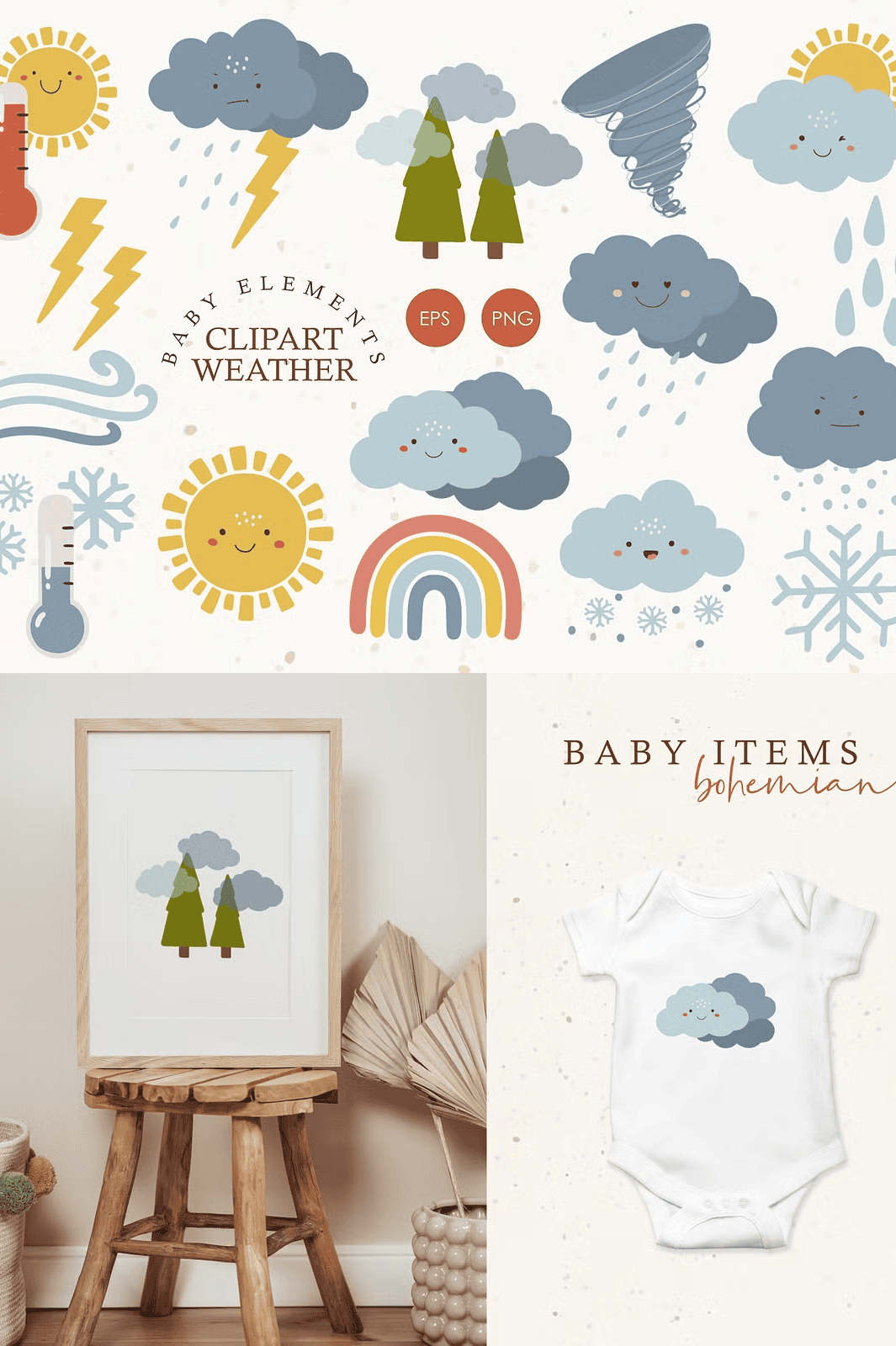 Love this weather theme? Discover more handcrafted boho-style clipart at our Creative Market shop: