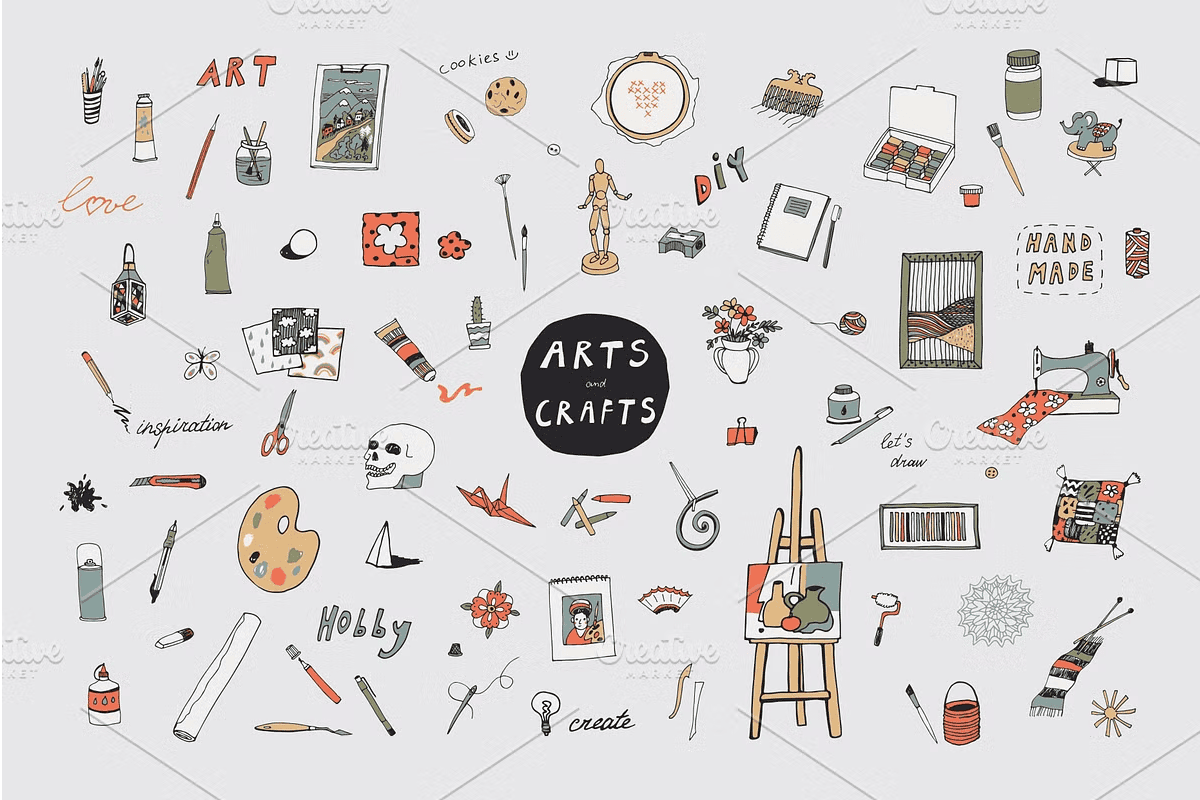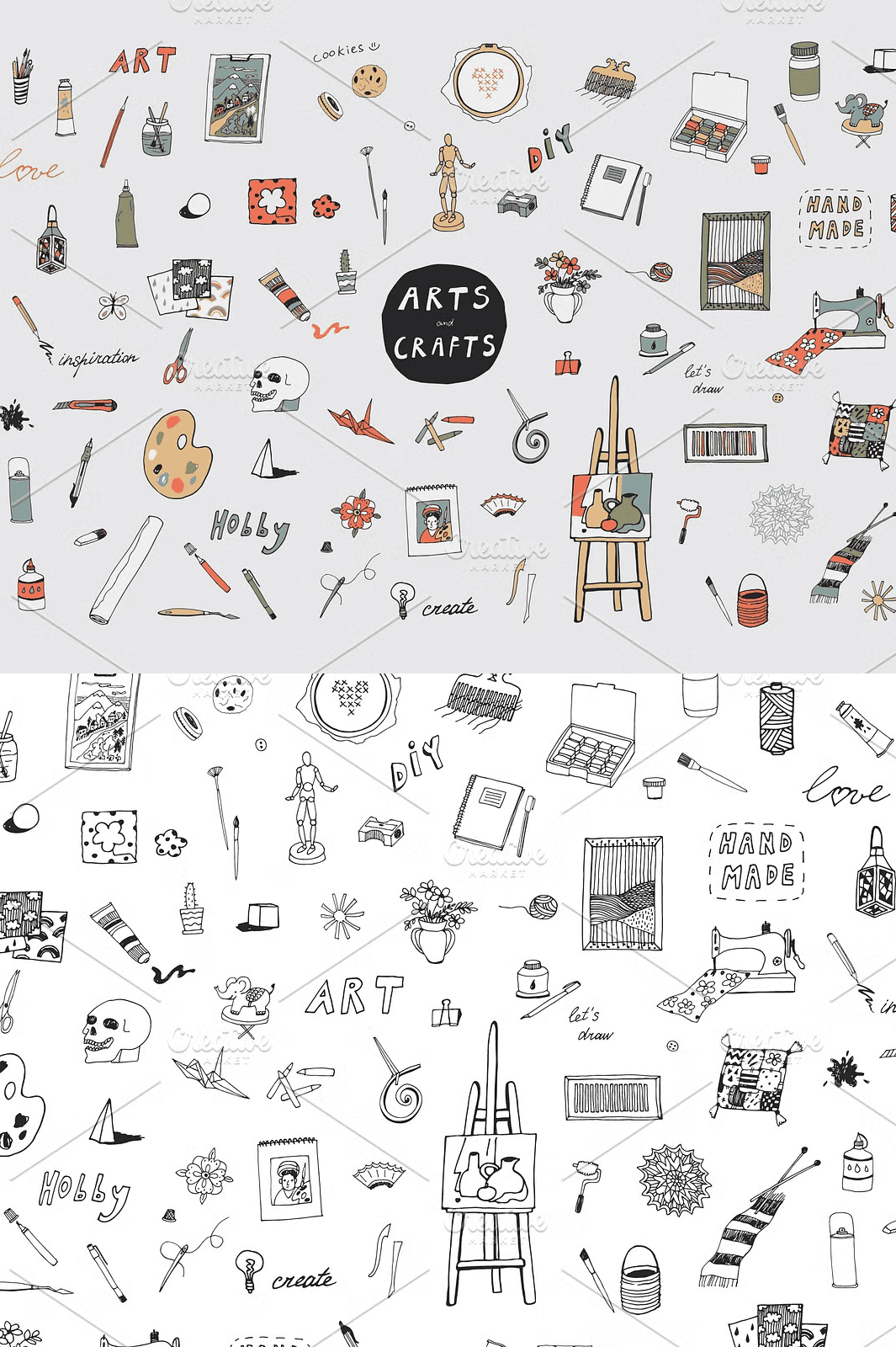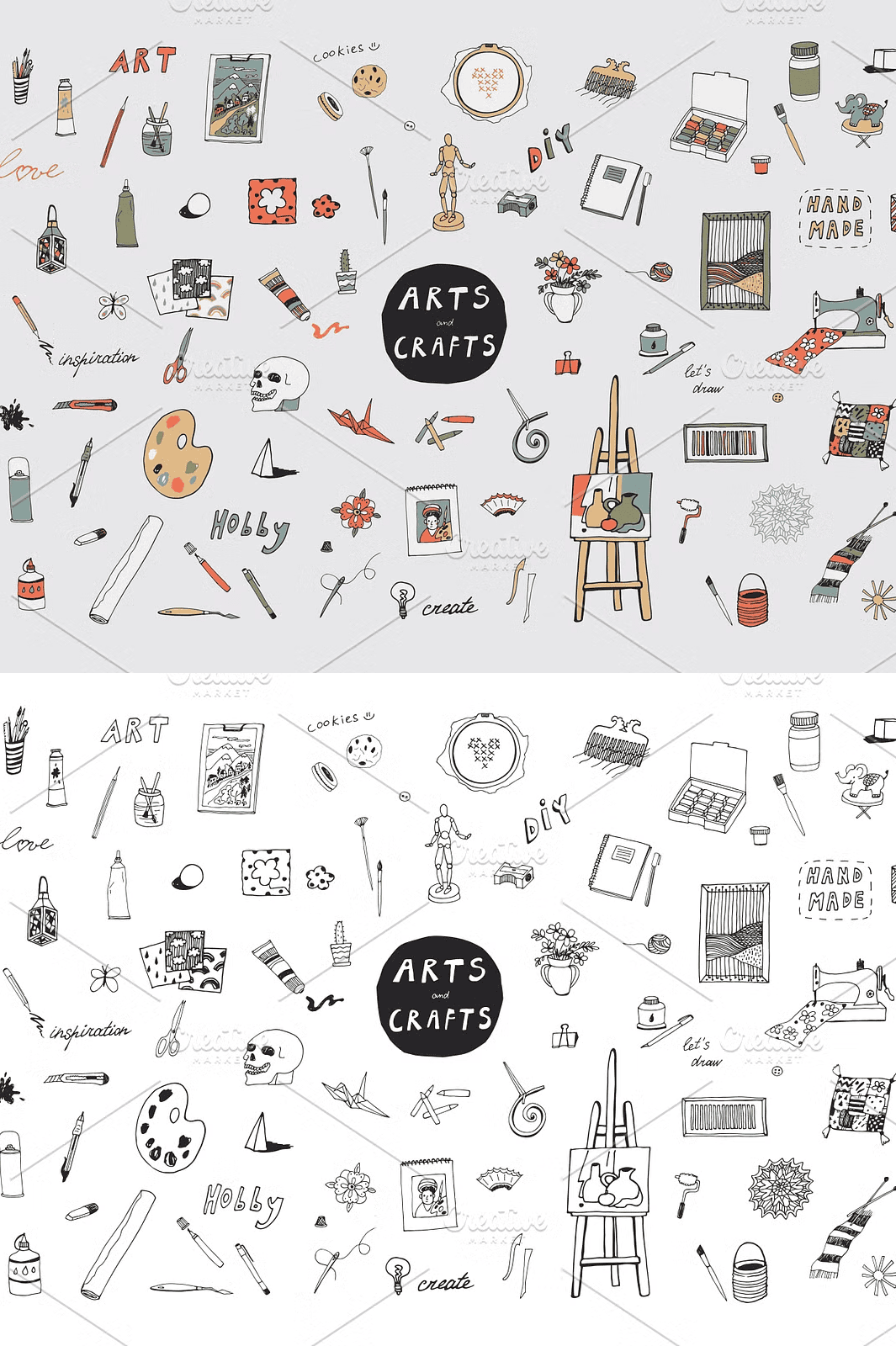Transform your next creative project with this dynamic **Arts and Crafts Illustrations Set + Seamless Patterns Bundle**, designed for designers, artists, and makers who demand precision, versatility, and visual impact. This collection delivers **5 high-quality digital assets** including **2 detailed illustration sets** (color and line versions) and **3 seamless patterns** all crafted for professional workflows and maximum flexibility.