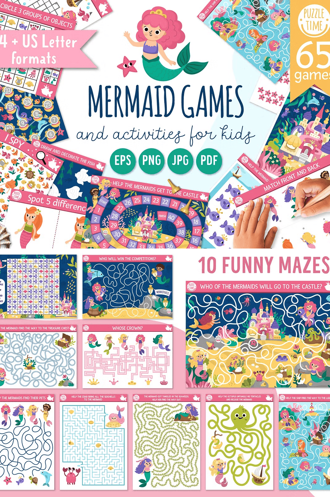 From shimmering mermaid princesses and noble mermen to magical sea creatures and a stunning underwater palace, every design is crafted with charm, consistency, and child-friendly visuals. The entire collection features a harmonious **cohesive color palette and artistic style**, making it easy to mix and match activities across different games no jarring mismatches, just smooth, immersive play.