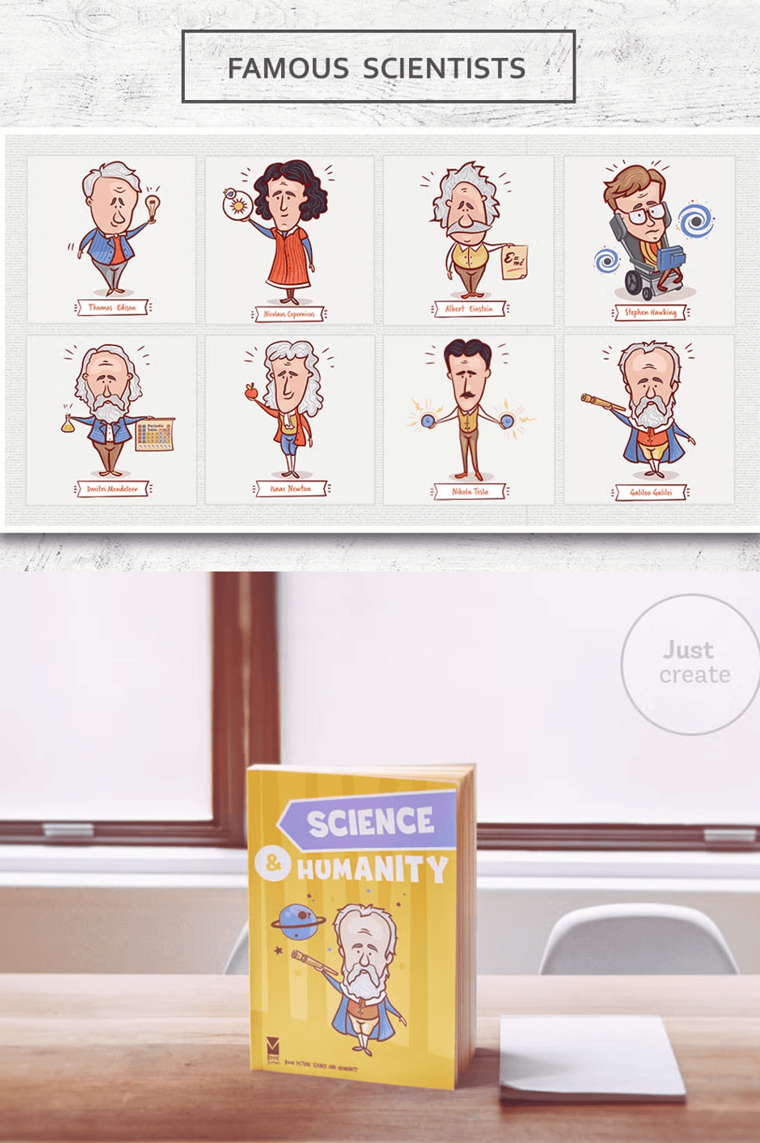 – [Famous Scientists • Volume 3](https://creativemarket.com/YetiCrab/4968338-Famous-scientists-%E2%80%A2-Volume-3)