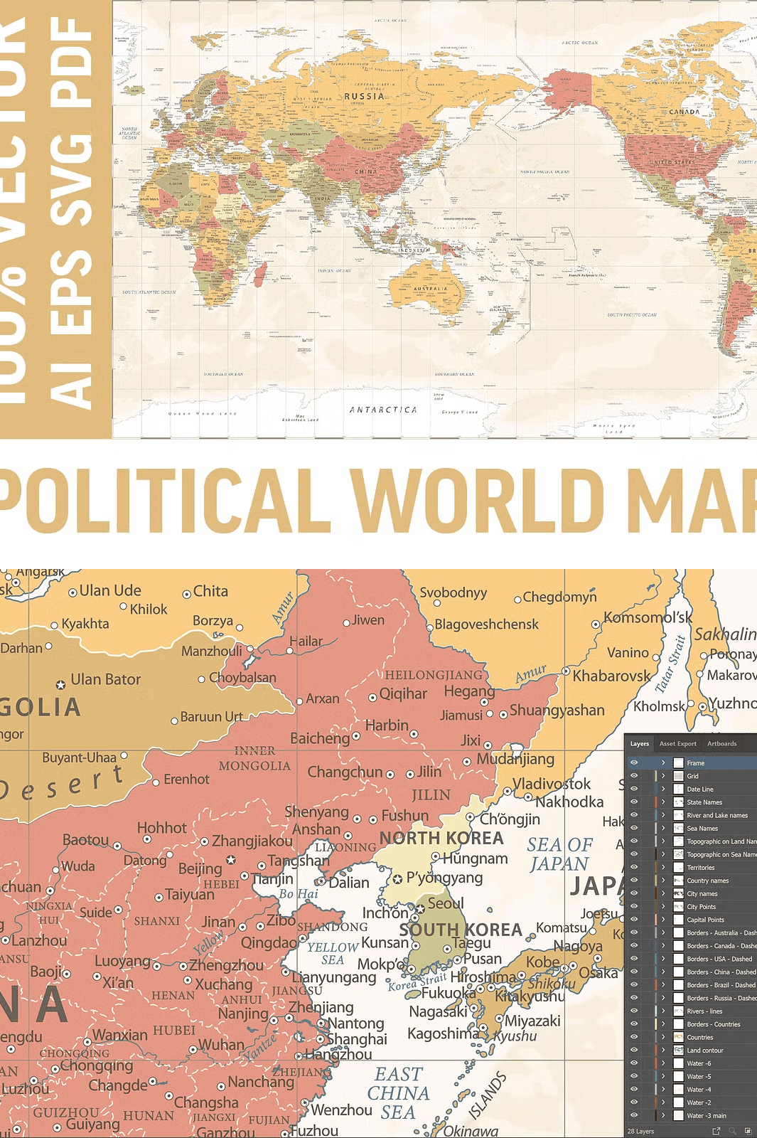 Elevate your design projects with this meticulously crafted **World Political Map (Pacific Edition)** a fully vectored, multi-layered map engineered for unmatched scalability and precision. Whether you’re creating a high-impact poster, a large-format mural, a professional presentation, or an educational resource, this map delivers crystal clear detail regardless of size. Every line, label, and geographic feature is preserved perfectly when resized because it’s built in true vector format.