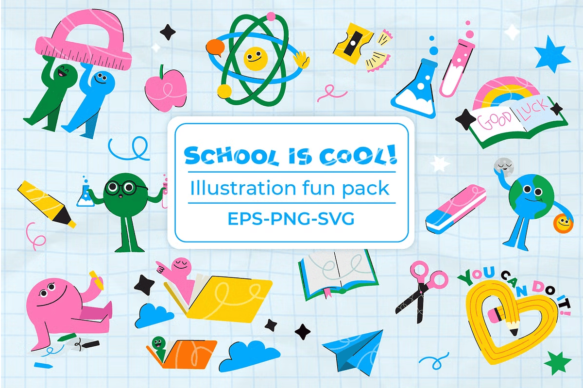 Whether you’re creating a printable welcome-back binder, designing eye-catching social media posts, or building engaging learning materials, this pack delivers. You’ll find illustrations for: