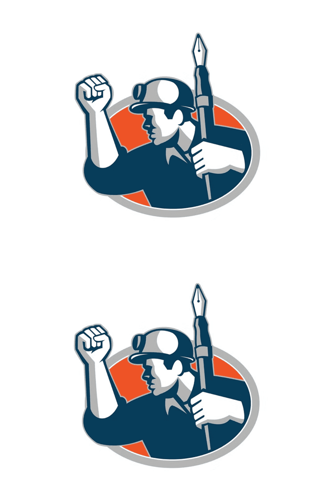 Step into the world of retro-inspired branding with this dynamic and charismatic mascot icon an iconic coal miner gripping a fountain pen and delivering a fist pump, all viewed from a side angle and isolated within a sleek oval frame. This is more than just an illustration it’s a symbol of resilience, creativity, and working-class pride reimagined for modern design.