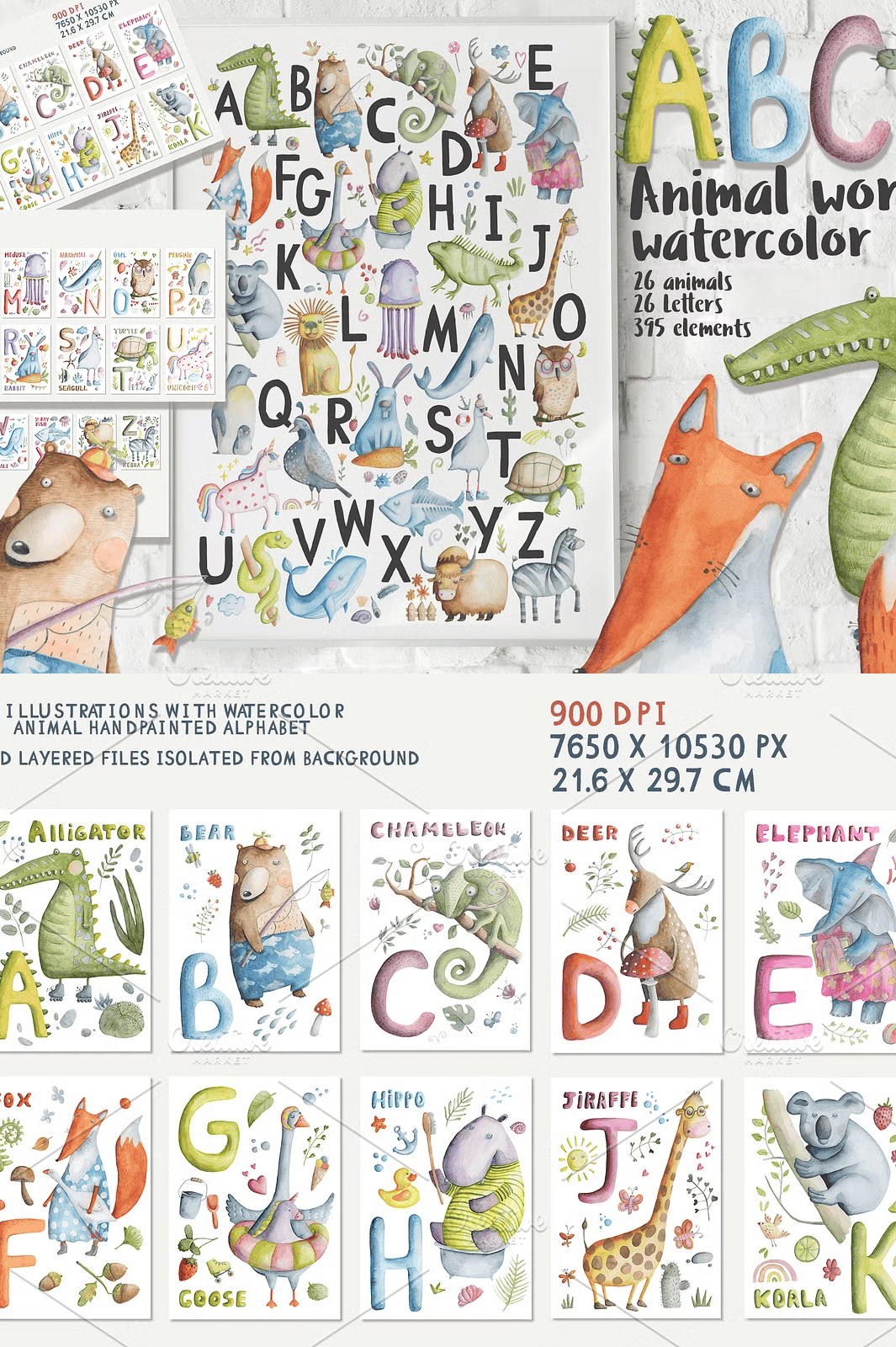 – **26 Full Alphabet Cards** – 7650 x 10530 px, 900 DPI, with each card containing the uppercase letter, animal illustration, animal name, and surrounding watercolor elements (trees, flowers, vines) all thoughtfully integrated for visual harmony