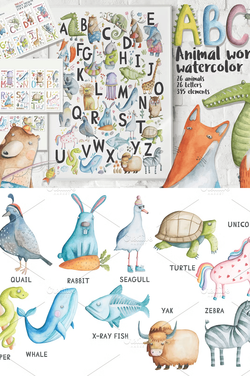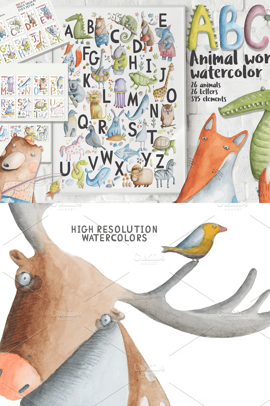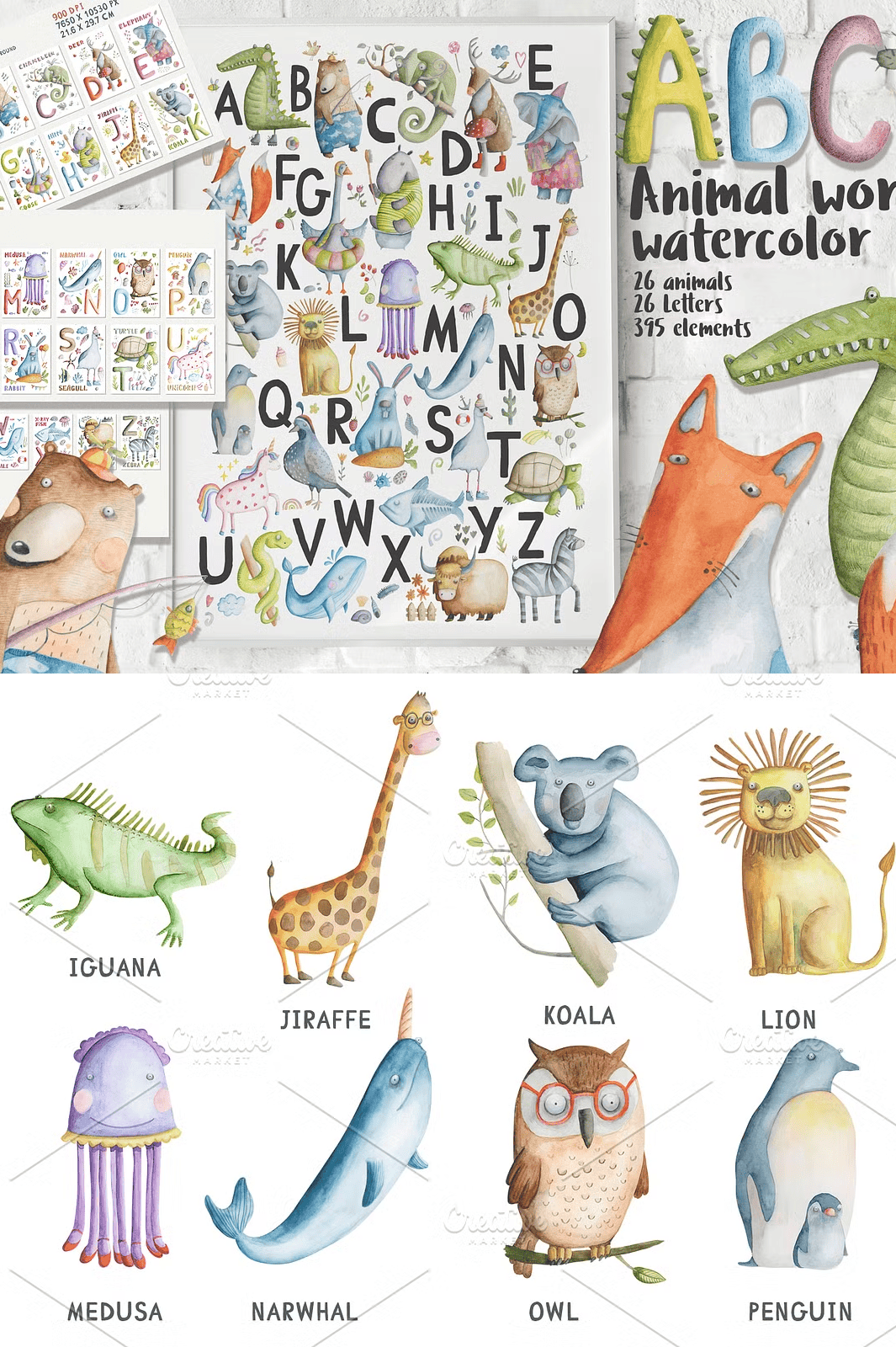 – **All 395 Elements Separated** – Includes 26 letters, 26 animal illustrations, and 343 decorative watercolor components (flowers, leaves, swirls, patterns) on transparent backgrounds for maximum flexibility
