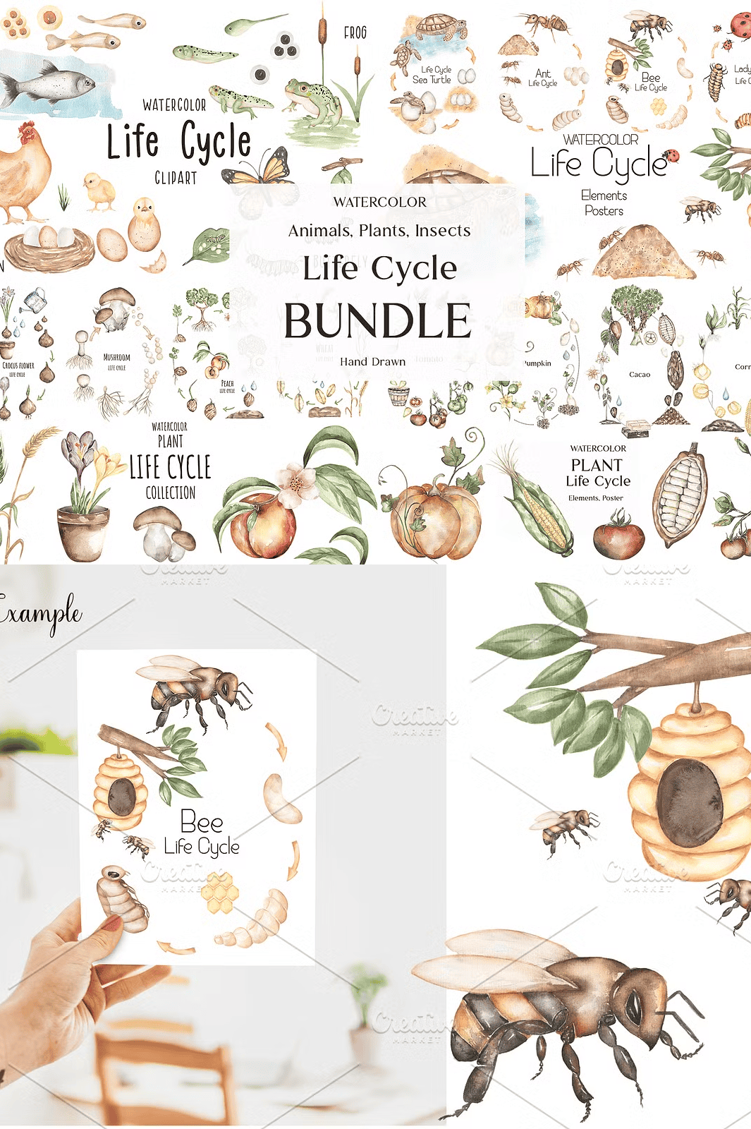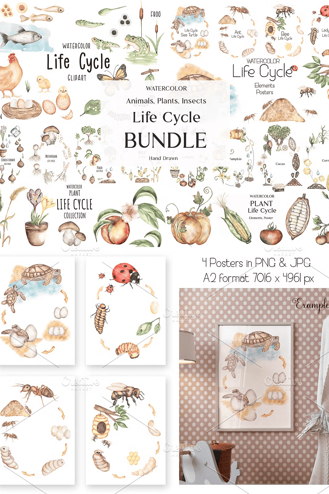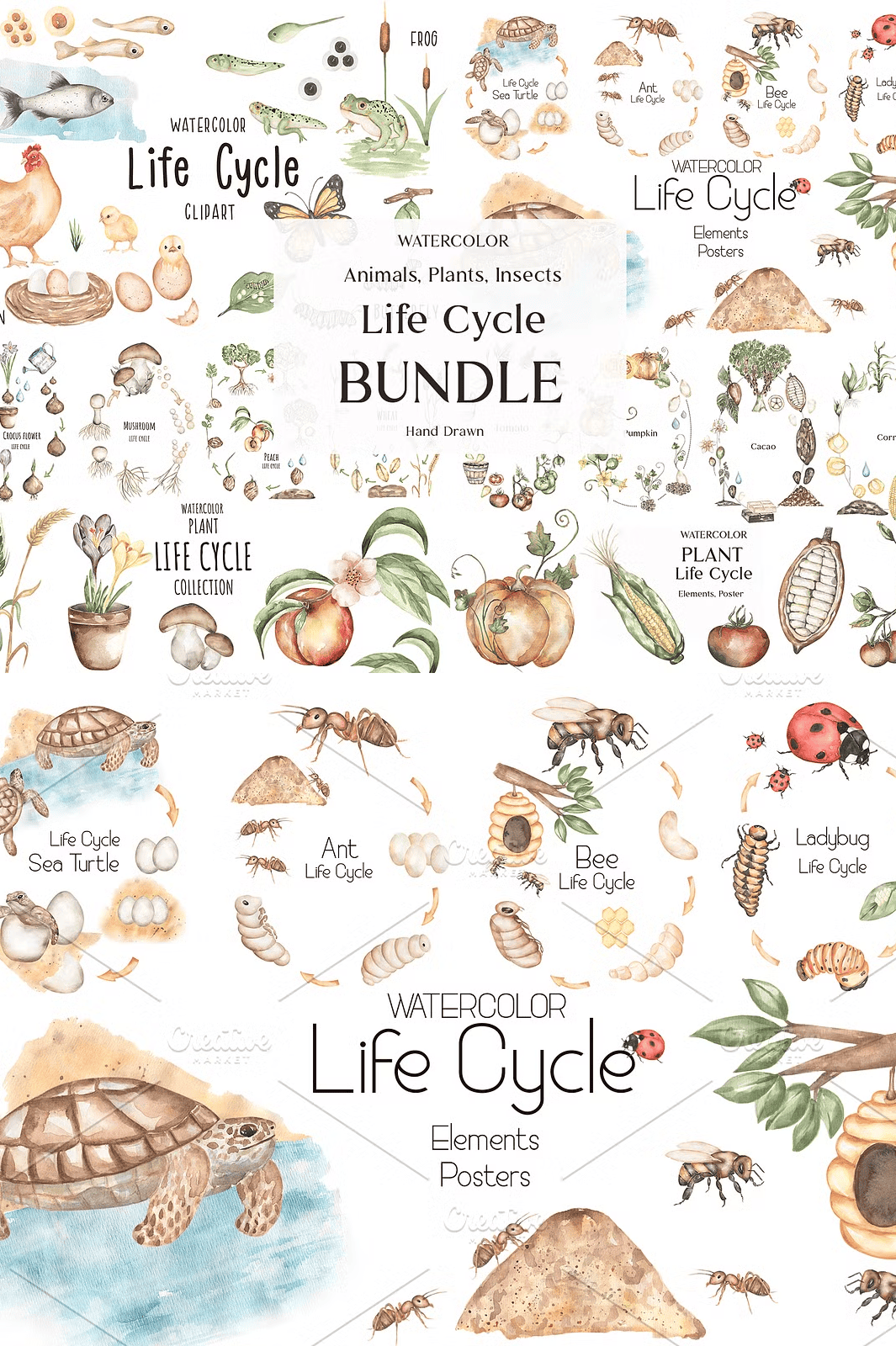 – **Collection 2: Insect & Reptile Life Cycles (Turtle, Bee, Ant, Ladybug)**