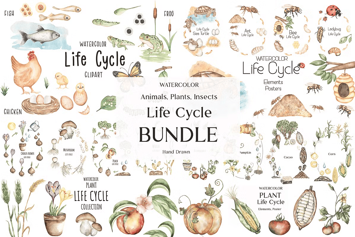 This isn’t just a clipart set it’s a gateway to teaching biology, ecology, and art through visual storytelling. Ideal for educators, homeschool parents, designers, and creative entrepreneurs, this bundle brings the miracle of life cycles to life with vibrant, inspiring detail.
